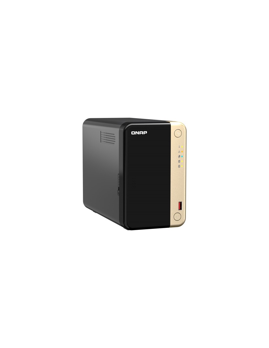 QNAP TS-264. Tipos de unidades de almacenamiento admitidas: HDD & SSD, Interfaces de disco de almacenamiento soportados: Serial ATA III, Tamaños de almacenamiento en disco soportados: 2.5,3.5". Familia de procesador: Intel® Celeron®, Fabricante de procesador: Intel, Modelo del procesador: N5095. Memoria interna: 8 GB, RAM máximo soportado: 8 GB, Memoria Flash: 4000 MB. Ethernet LAN, velocidad de transferencia de datos: 10,100,1000,2500 Mbit/s, Protocolos de red compatibles: IPv4, IPv6. Tipo de chasis: Torre, Tipo de enfriamiento: Activo, Color del producto: Negro, Oro