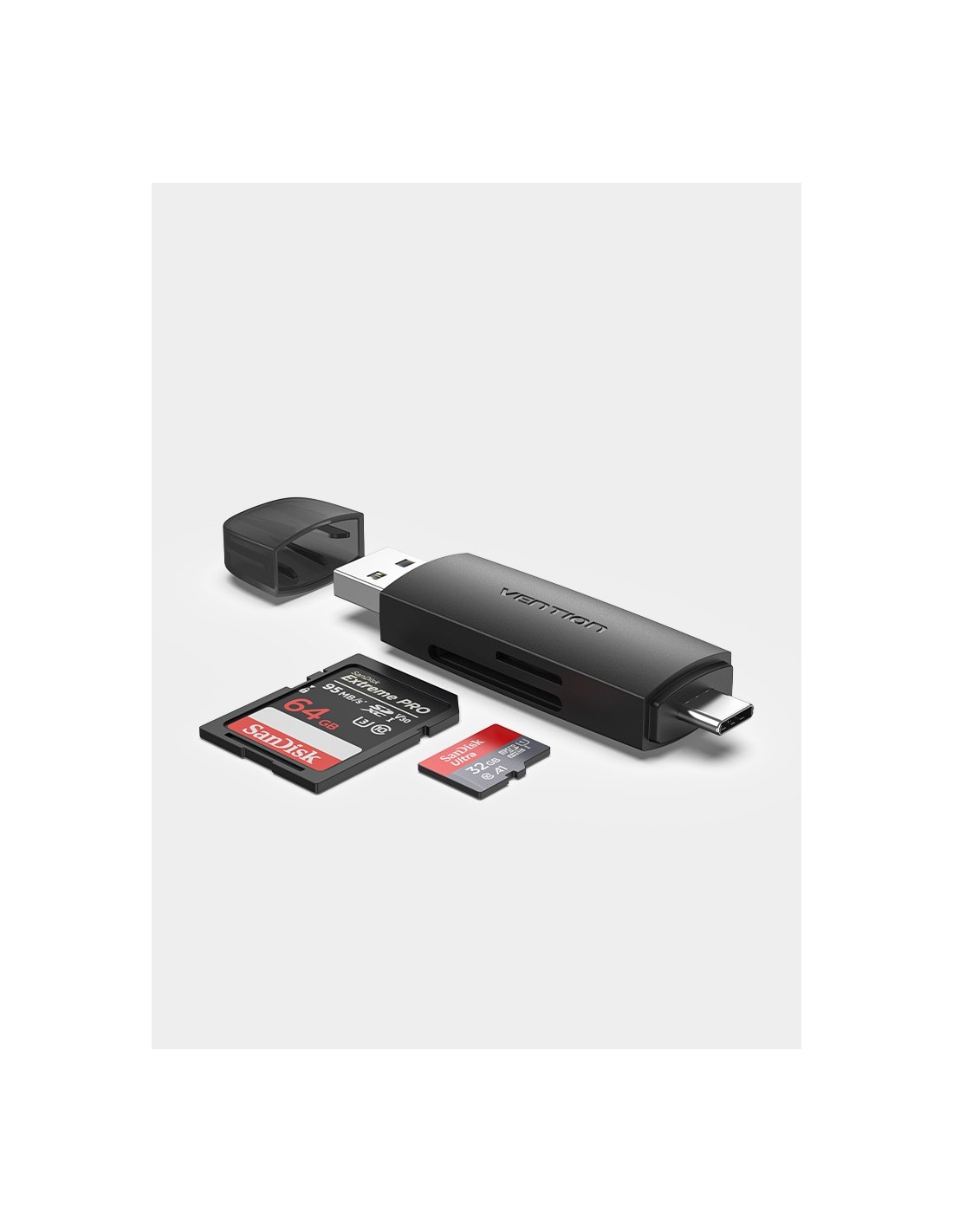 VENTIONVention Lector de Tarjetas Externo CLKB0/ USB 3.0 y USB Tipo-C, MicroSD (TransFlash), MicroSDHC, MicroSDXC, SDHC, SDXC, Negro, 5000 Mbit/s, Acrilonitrilo butadieno estireno (ABS), Policarbonato (PC), USB 3.2 Gen 1 (3.1 Gen 1) Type-A/Type-C, 20 mm