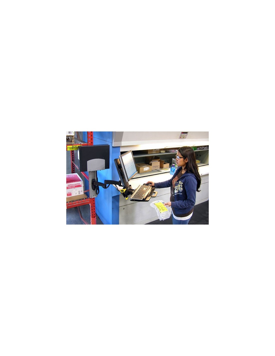- Bandeja del teclado ergonómica con inclinación negativa para uso del ratón con la mano izquierda o la derecha, asegura la estabilidad de la muñeca en posición neutra durante la introducción de datos