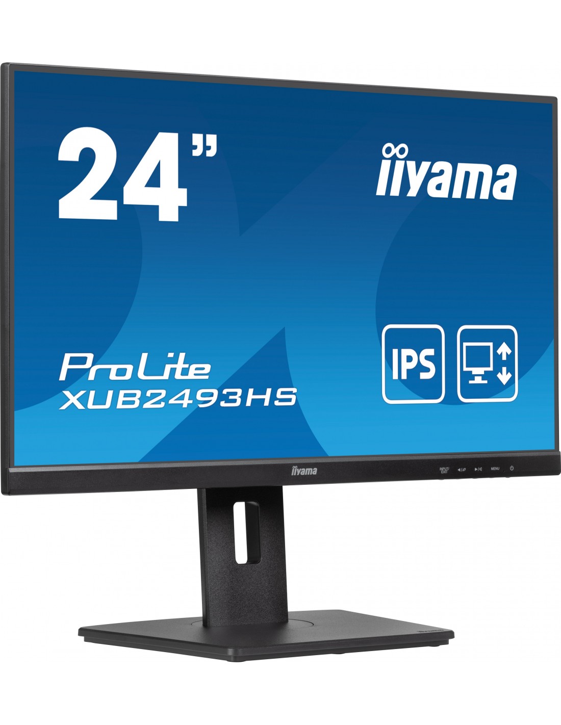 iiyama ProLite XUB2493HS-B6. Diagonal de la pantalla: 60,5 cm (23.8"), Resolución de la pantalla: 1920 x 1080 Pixeles, Tipo HD: Full HD, Tecnología de visualización: LED, Superficie de la pantalla: Mate, Tiempo de respuesta: 0,5 ms, Relación de aspecto nativa: 16:9, Ángulo de visión, horizontal: 178°, Ángulo de visión, vertical: 178°. Altavoces incorporados. montaje VESA, Ajustes de altura. Color del producto: Negro