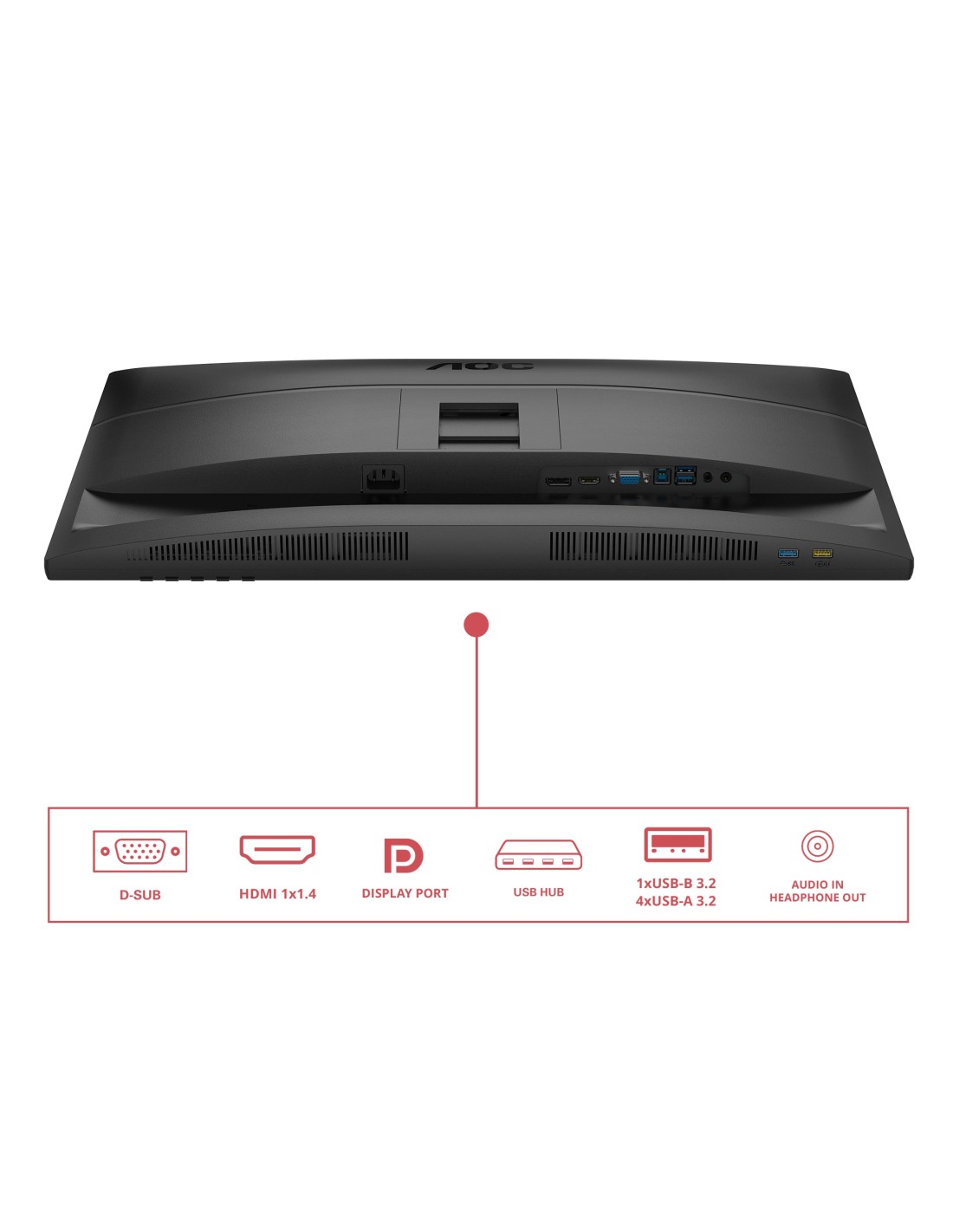 AOC 27E4U. Diagonal de la pantalla: 68,6 cm (27"), Resolución de la pantalla: 1920 x 1080 Pixeles, Tipo HD: Full HD, Tecnología de visualización: LED, Tiempo de respuesta: 4 ms, Relación de aspecto nativa: 16:9. Altavoces incorporados. Conector USB incorporado, Versión de conector USB: 3.2 Gen 1 (3.1 Gen 1). montaje VESA, Ajustes de altura. Color del producto: Negro