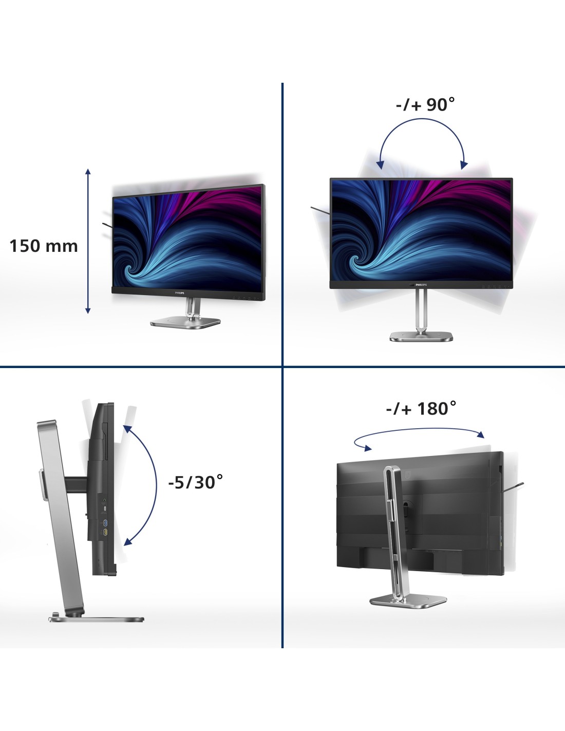 Philips 27B2U4601/00. Diagonal de la pantalla: 68,6 cm (27"), Resolución de la pantalla: 2560 x 1440 Pixeles, Tipo HD: Quad HD, Tecnología de visualización: LCD, Tiempo de respuesta: 4 ms, Relación de aspecto nativa: 16:9, Ángulo de visión, horizontal: 178°, Ángulo de visión, vertical: 178°. Altavoces incorporados. Conector USB incorporado, Versión de conector USB: 3.2 Gen 2 (3.1 Gen 2). montaje VESA, Ajustes de altura. Color del producto: Gris