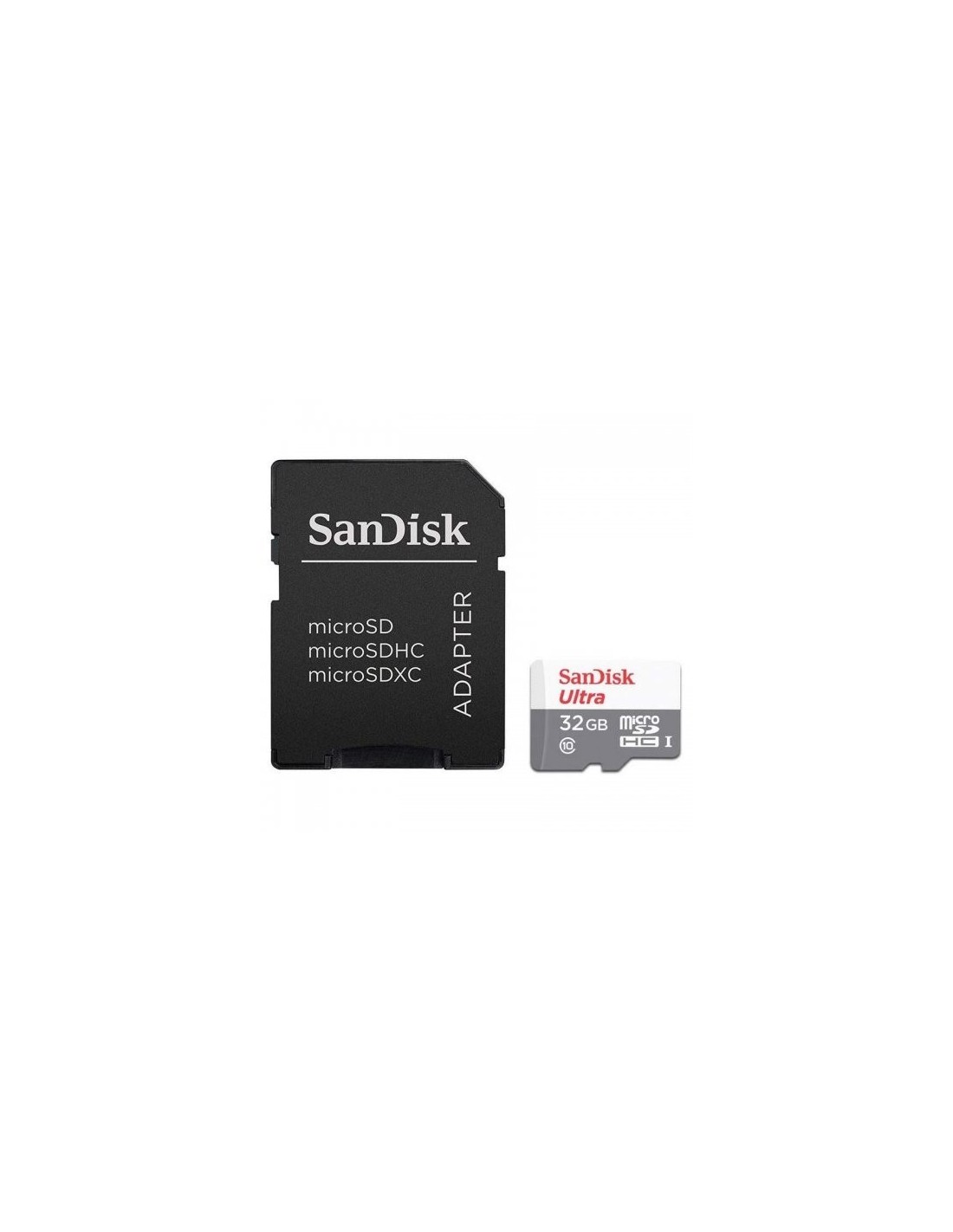 SanDisk Ultra microSD. Capacidad: 32 GB, Tipo de tarjeta flash: MicroSDHC, Clase de memoria flash: Clase 10, Tipo de memoria interna: UHS-I. Color del producto: Gris, Rojo
