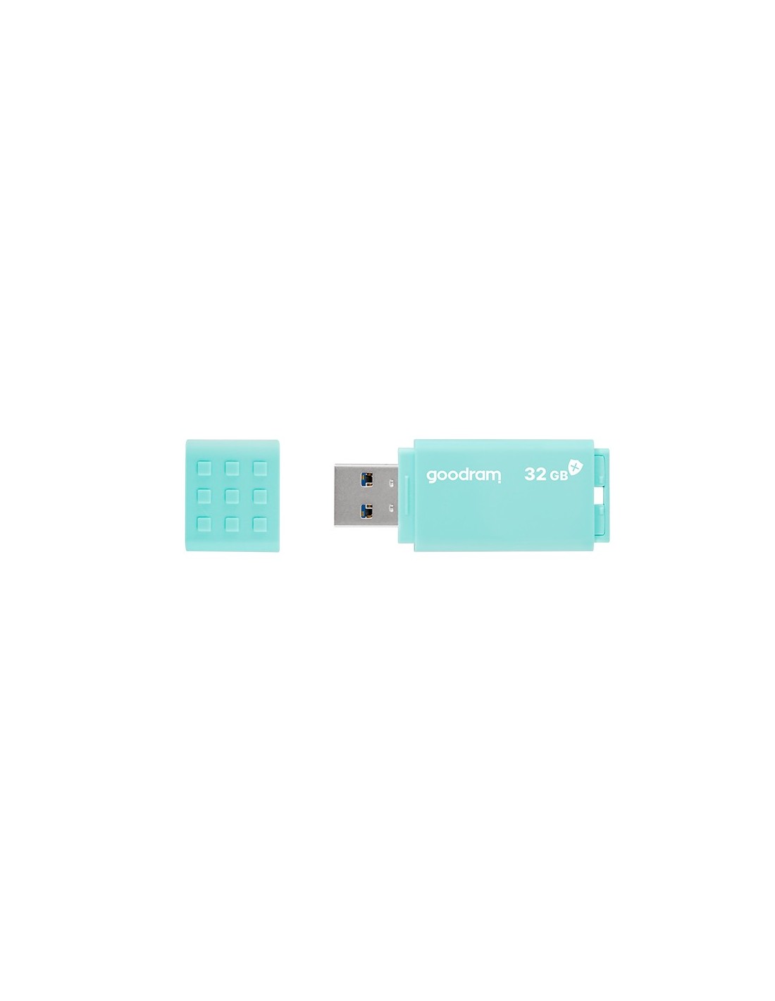 Goodram UME3. Capacidad: 32 GB, Interfaz del dispositivo: USB tipo A, Versión USB: 3.2 Gen 1 (3.1 Gen 1), Velocidad de lectura: 60 MB/s, Velocidad de escritura: 20 MB/s. Factor de forma: Tapa. Peso: 9 g. Color del producto: Turquesa