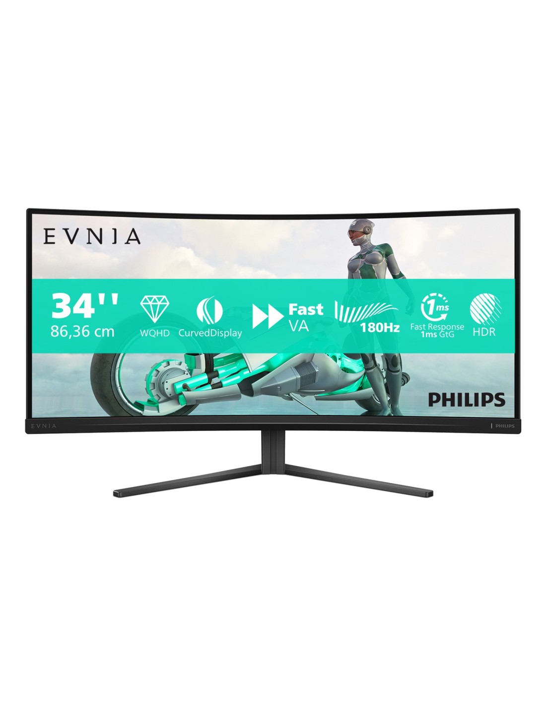 Philips Evnia 34M2C3500L/00, 86,4 cm (34"), 3440 x 1440 Pixeles, Wide Quad HD, LCD, 1 ms, Negro