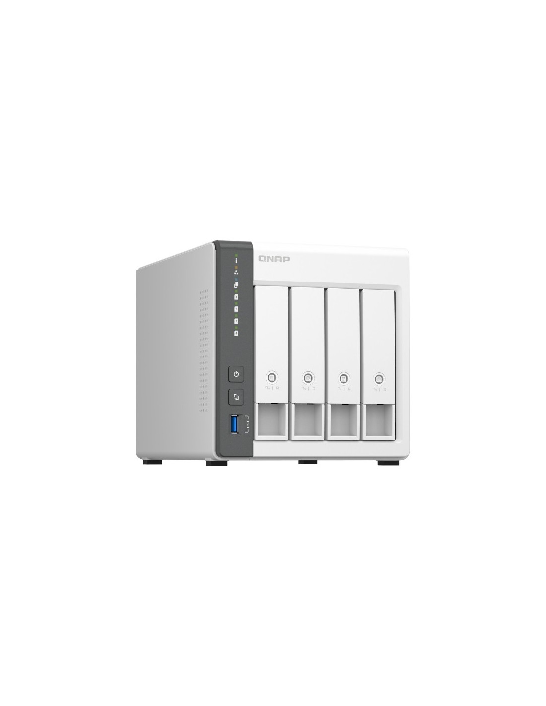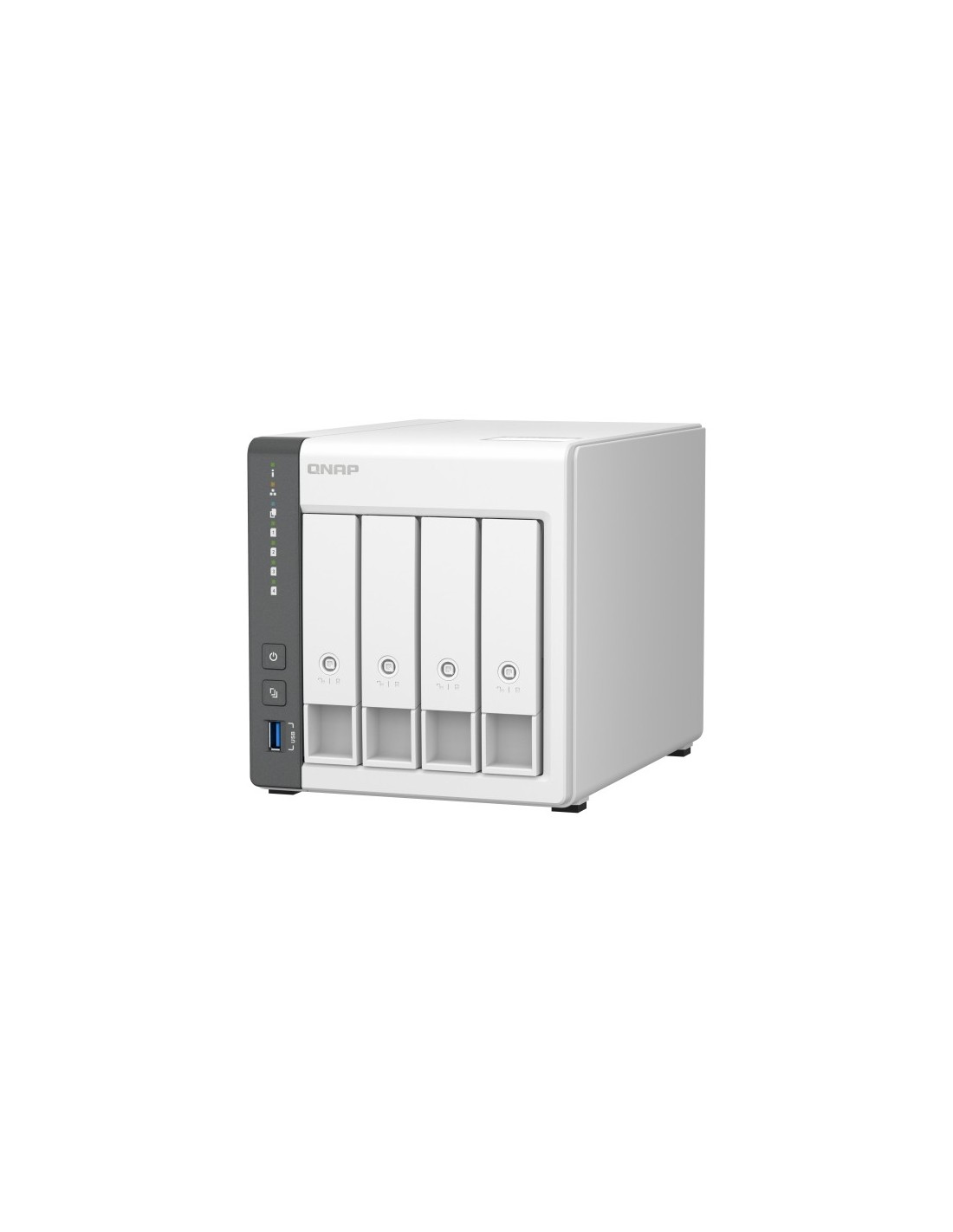 QNAP TS-433. Tipos de unidades de almacenamiento admitidas: HDD & SSD, Interfaces de disco de almacenamiento soportados: SATA, Tamaños de almacenamiento en disco soportados: 2.5,3.5". Familia de procesador: ARM, Modelo del procesador: Cortex-A55, Frecuencia del procesador: 2 GHz. Memoria interna: 4 GB, RAM máximo soportado: 4 GB, Memoria Flash: 4000 MB. Ethernet LAN, velocidad de transferencia de datos: 100,1000,2500 Mbit/s. Tipo de chasis: Torre, Tipo de enfriamiento: Activo, Número de ventiladores: 1 Ventilador(es)