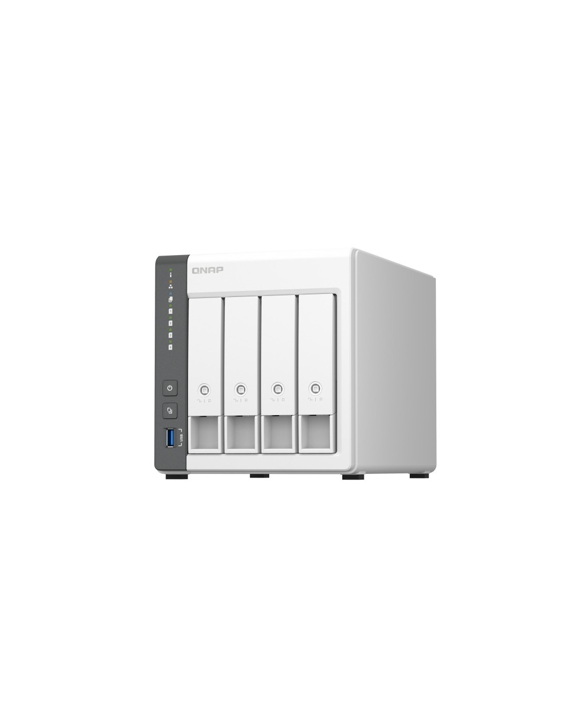 QNAP TS-433. Tipos de unidades de almacenamiento admitidas: HDD & SSD, Interfaces de disco de almacenamiento soportados: SATA, Tamaños de almacenamiento en disco soportados: 2.5,3.5". Familia de procesador: ARM, Modelo del procesador: Cortex-A55, Frecuencia del procesador: 2 GHz. Memoria interna: 4 GB, RAM máximo soportado: 4 GB, Memoria Flash: 4000 MB. Ethernet LAN, velocidad de transferencia de datos: 100,1000,2500 Mbit/s. Tipo de chasis: Torre, Tipo de enfriamiento: Activo, Número de ventiladores: 1 Ventilador(es)