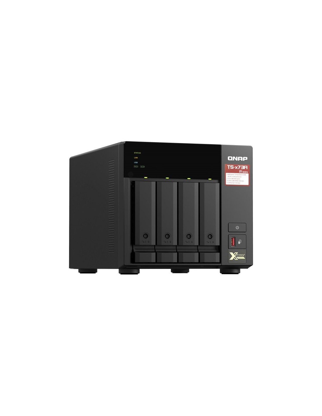 QNAP TS-473A. Tipos de unidades de almacenamiento admitidas: HDD & SSD, Interfaz de unidad de almacenamiento: Serial ATA III, Interfaces de disco de almacenamiento soportados: M.2, SATA, Serial ATA II, Serial ATA III. Familia de procesador: Ryzen Embedded, Fabricante de procesador: AMD, Modelo del procesador: V1500B. Memoria interna: 8 GB, Tipo de memoria interna: DDR4, RAM máximo soportado: 64 GB. Ethernet LAN, velocidad de transferencia de datos: 100,1000,2500 Mbit/s. Tipo de chasis: Torre, Tipo de enfriamiento: Activo, Color del producto: Negro