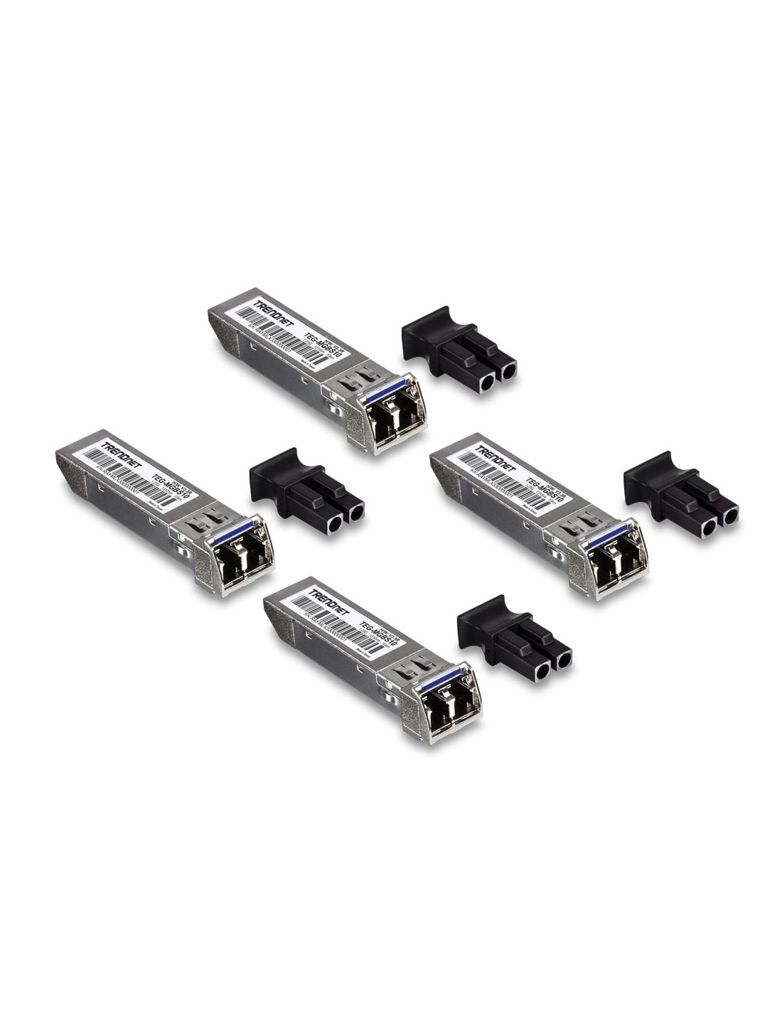 El módulo LC monomodo SFP, Pack de 4, de TRENDnet, modelo TEG-MGBS10/4, incluye cuatro modulos SFP Gigabit de fibra que son compatibles con las ranuras SFP estándar presentes en switches de red y convertidores de medios. Cada módulo SFP monomodo está equipado con una interfaz de conexión de fibra dúplex LC y admite conexiones de fibra monomodo Gigabit para aplicaciones de redes de larga distancia.