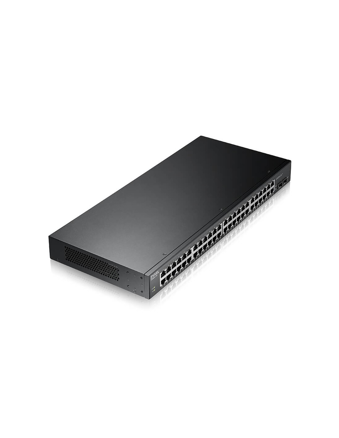 Zyxel GS1900-48HPv2. Tipo de interruptor: Gestionado, Capa del interruptor: L2. Puertos tipo básico de conmutación RJ-45 Ethernet: Gigabit Ethernet (10/100/1000), Cantidad de puertos básicos de conmutación RJ-45 Ethernet: 48. Bidireccional completo (Full duplex). Tabla de direcciones MAC: 8000 entradas, Capacidad de conmutación: 100 Gbit/s. Estándares de red: IEEE 802.1Q, IEEE 802.1p, IEEE 802.3, IEEE 802.3ab, IEEE 802.3ad, IEEE 802.3af, IEEE 802.3at, IEEE.... Conector eléctrico: Toma de entrada de CC. Energía sobre Ethernet (PoE). Montaje en rack