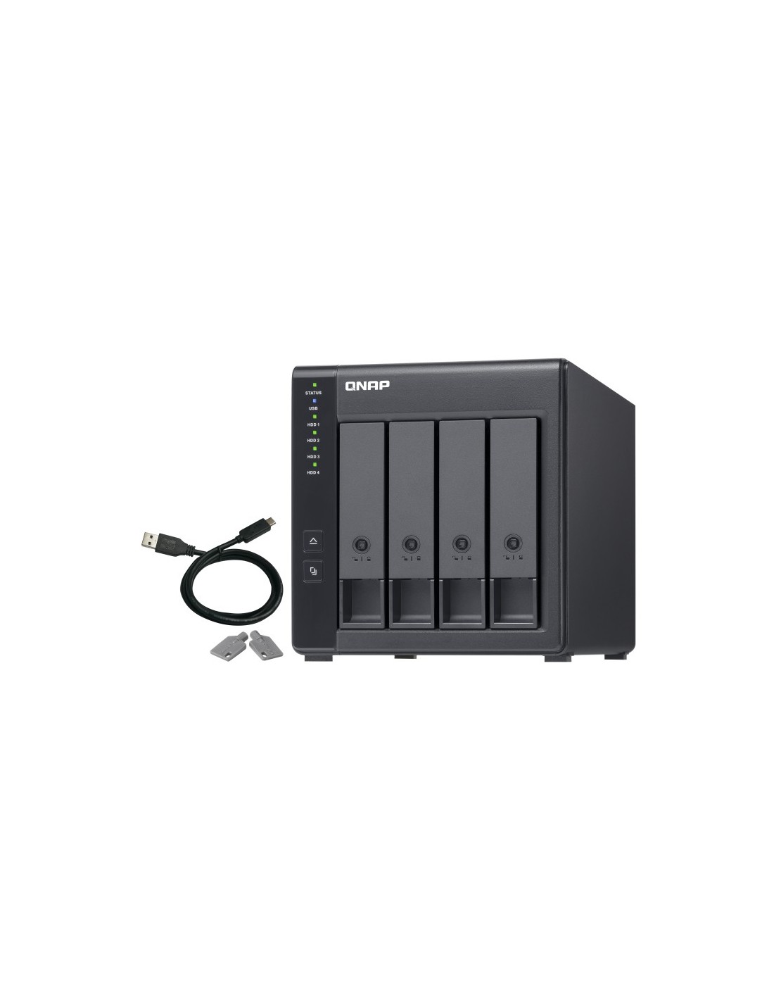 QNAP TR-004. Tipo de producto: Carcasa de disco duro/SSD. Número de unidades de almacenamiento compatibles: 4, Tamaño de la unidad de almacenamiento: 2.5/3.5", Interfaces de disco de almacenamiento soportados: Serial ATA II. Velocidad de transferencia de datos: 3 Gbit/s. Niveles RAID: 0, 1, 5, 10, JBOD, Hot-swap. Color del producto: Negro. Conector USB: USB Tipo C