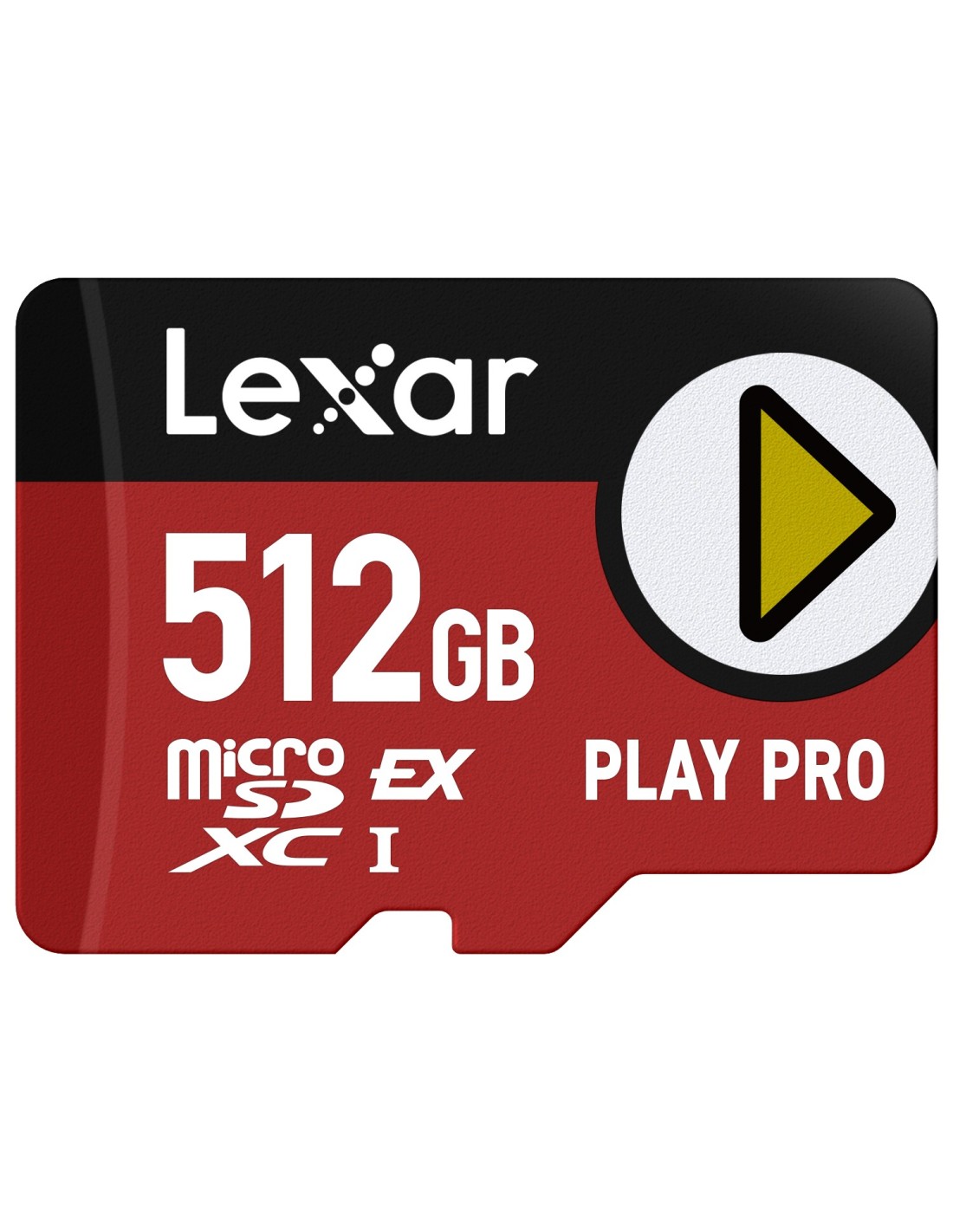 Lexar PLAY PRO microSDXC. Capacidad: 512 GB, Tipo de tarjeta flash: MicroSDXC, Clase de memoria flash: Clase 3, Tipo de memoria interna: UHS-I, Velocidad de lectura: 900 MB/s, Velocidad de escritura: 600 MB/s, Clase de velocidad UHS: Class 3 (U3), Clase de velocidad de vídeo: V30. Funciones de protección: Protección contra caídas, Color del producto: Negro, Rojo