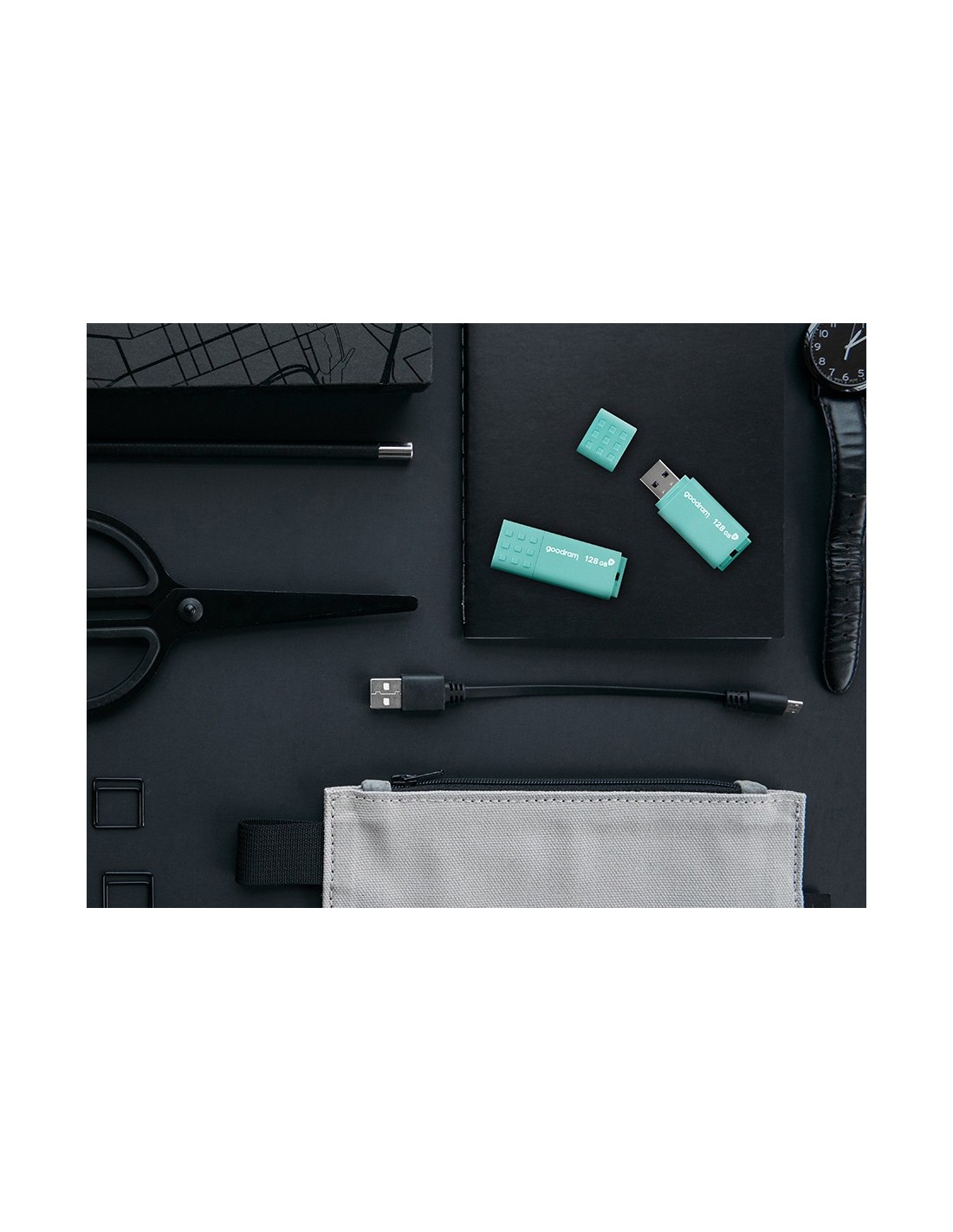 Goodram UME3. Capacidad: 64 GB, Interfaz del dispositivo: USB tipo A, Versión USB: 3.2 Gen 1 (3.1 Gen 1), Velocidad de lectura: 60 MB/s, Velocidad de escritura: 20 MB/s. Factor de forma: Tapa. Peso: 9 g. Color del producto: Turquesa