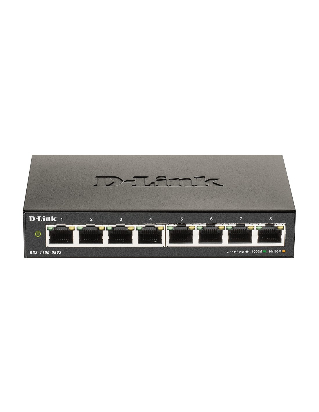 D-Link DGS-1100-08V2. Tipo de interruptor: Gestionado, Capa del interruptor: L2. Puertos tipo básico de conmutación RJ-45 Ethernet: Gigabit Ethernet (10/100/1000), Cantidad de puertos básicos de conmutación RJ-45 Ethernet: 8. Capacidad de conmutación: 16 Gbit/s. Voltaje de entrada DC: 5 V
