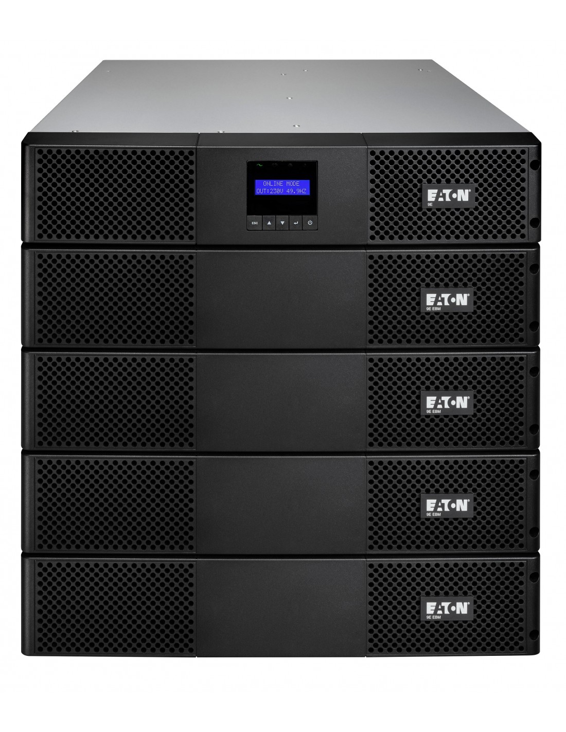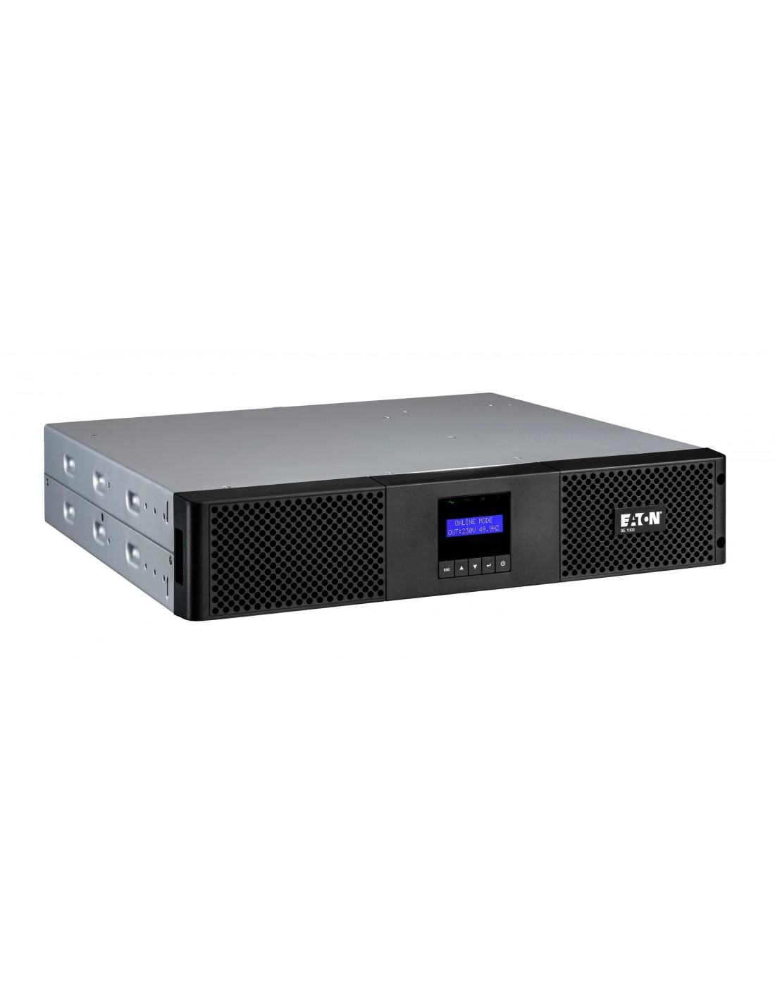 Eaton 9E1000IR. Topología UPS: Doble conversión (en línea), Capacidad de potencia de salida (VA): 1 kVA, Potencia de salida: 900 W. Tipo de salida AC: C13 acoplador, C14 acoplador, Conector: C13 acoplador, Cantidad de salidas AC: 4 salidas AC. Tecnología de batería: Plomo-ácido, Capacidad de la batería: 7 Ah, Voltaje de la pila: 12 V. Factor de forma: Torre, Color del producto: Negro, Capacidad del rack: 2U. Ancho: 438 mm, Profundidad: 438 mm, Altura: 86,5 mm