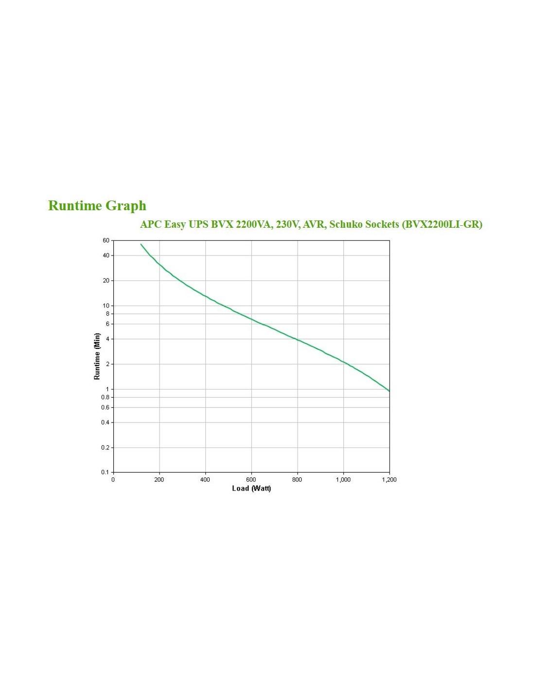 APC Easy UPS. Topología UPS: Línea interactiva, Capacidad de potencia de salida (VA): 2,2 kVA, Potencia de salida: 1200 W. Tipo de salida AC: Tipo F, Conector: Tipo F. Tiempo de recarga de la batería: 6 h. Color del producto: Negro, Longitud de cable: 1,2 m, Certificación: CE, EN/IEC 62040-1, EN/IEC 62040-2. Ancho: 140 mm, Profundidad: 390 mm, Altura: 190 mm