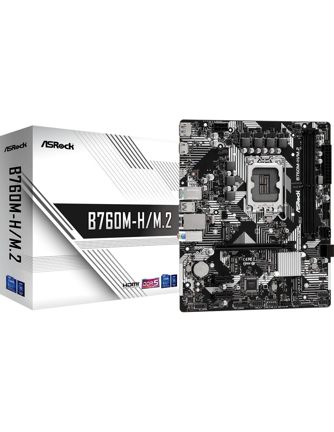 Asrock B760M-H/M.2, Intel, LGA 1700, Intel® Core™ i3, Intel® Core™ i5, Intel® Core™ i7, Intel® Core™ i9, DDR5-SDRAM, 96 GB, DIMM