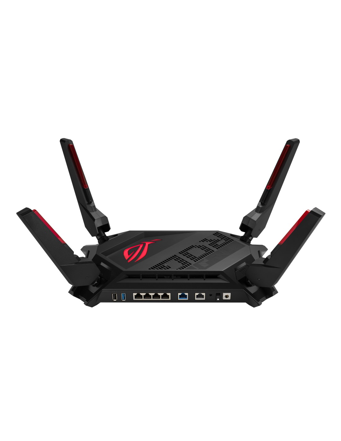 ASUS GT-AX6000 AiMesh. Tipo de conexión WAN: RJ-45. Banda Wi-Fi: Doble banda (2,4 GHz / 5 GHz), Estándar Wi-Fi: Wi-Fi 6 (802.11ax), Tasa de transferencia de datos WLAN (máx.): 4804 Mbit/s. Tipo de interfaz Ethernet LAN: Gigabit Ethernet, Ethernet LAN, velocidad de transferencia de datos: 10,100,1000,2500 Mbit/s, Estándares de red: IEEE 802.11a, IEEE 802.11ac, IEEE 802.11ax, IEEE 802.11b, IEEE 802.11g, IEEE 802.11n. Algoritmos de seguridad soportados: WPA, WPA2, NAT, funcionalidad: PPTP, L2TP, IPSec, RTSP, H.323, SIP Passthrough,PPPoE relay. Tipo de producto: Router de sobremesa, Color del producto: Negro, Indicadores LED: LAN, Poder, WAN, WPS