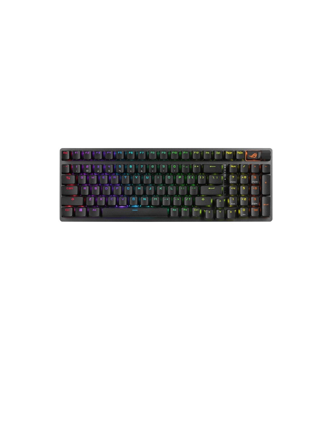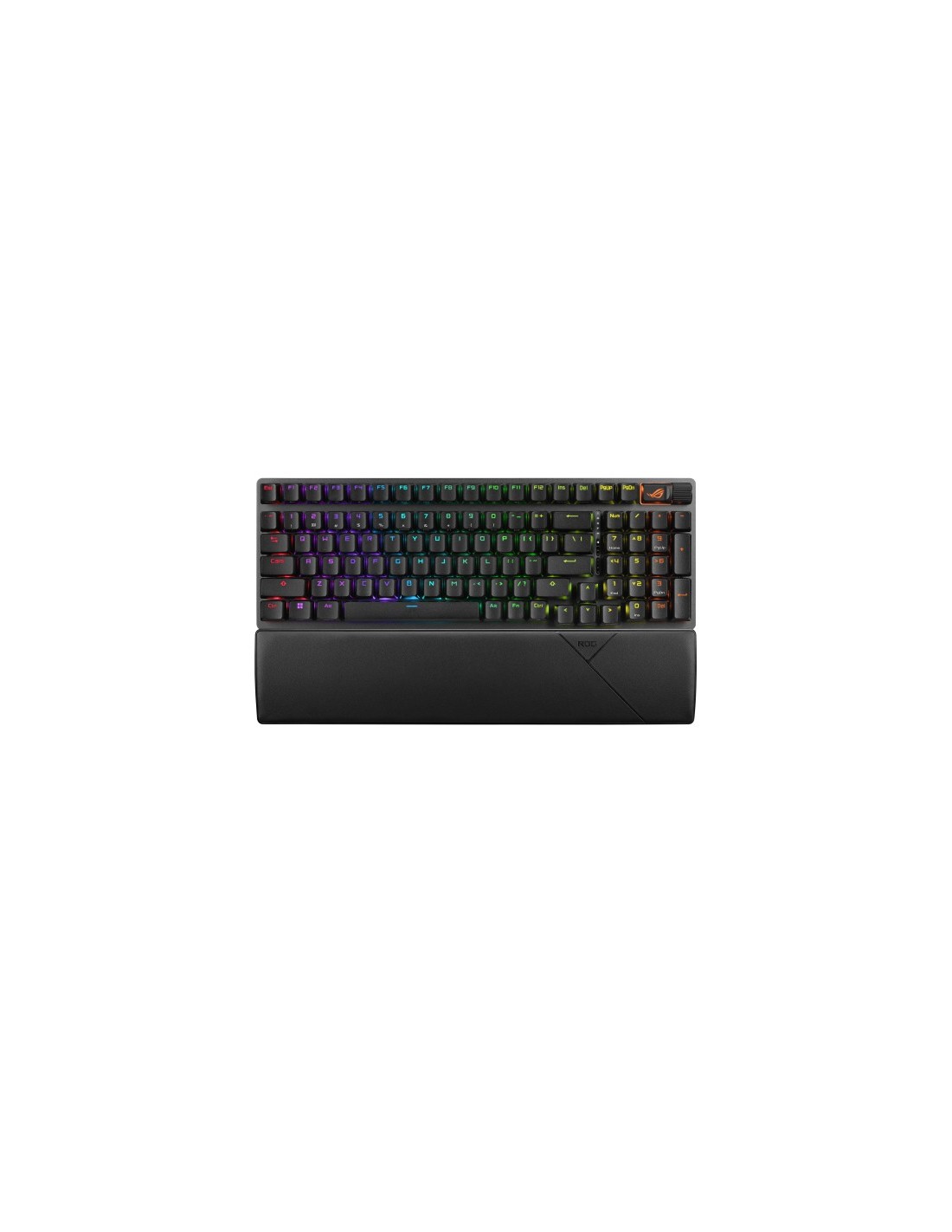 ASUS ROG Strix Scope II 96 Wireless. Formato del teclado: 96%, Tecnología de conectividad: Inalámbrico y alámbrico, Interfaz del dispositivo: USB + RF Wireless + Bluetooth, Interruptor del teclado: Interruptor mecánico. Tipo de retroiluminación: LED RGB, Descansa muñecas. Longitud de cable: 2 m. Uso recomendado: Juego. Color del producto: Negro