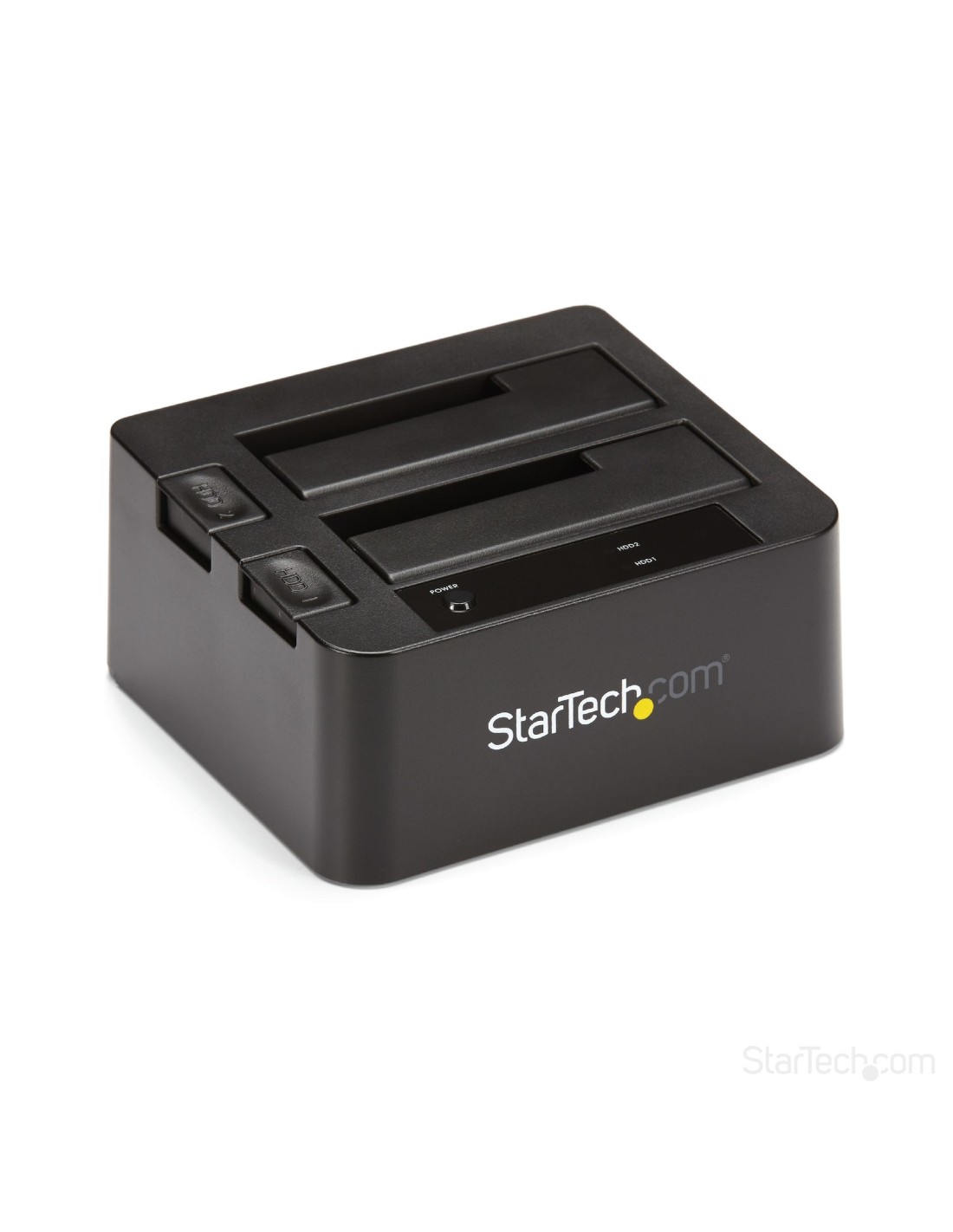 StarTech.com Docking Station de 2 Bahías - USB 3.1 a SATA - USB 3.1 (10 Gbps) - SATA I/II/III de 2,5/3,5" - Base de Acoplamiento SSD/HDD - de Intercambio en Caliente - Carga Superior. Tipo de almacenamiento: Unidad de disco duro, SSD, Interfaz de unidad de almacenamiento: SATA, Serial ATA II, Serial ATA III, Tamaños de almacenamiento en disco soportados: 2.5,3.5". Interfaz de host: USB 3.2 Gen 2 (3.1 Gen 2) Type micro-B. Color del producto: Negro, Material: Plástico, Indicadores LED: Actividad, Poder. Voltaje de entrada AC: 100-240 V, Corriente de entrada: 1.3 A, Voltaje de salida: 12 V. Ancho: 148 mm, Profundidad: 132 mm, Altura: 70 mm
