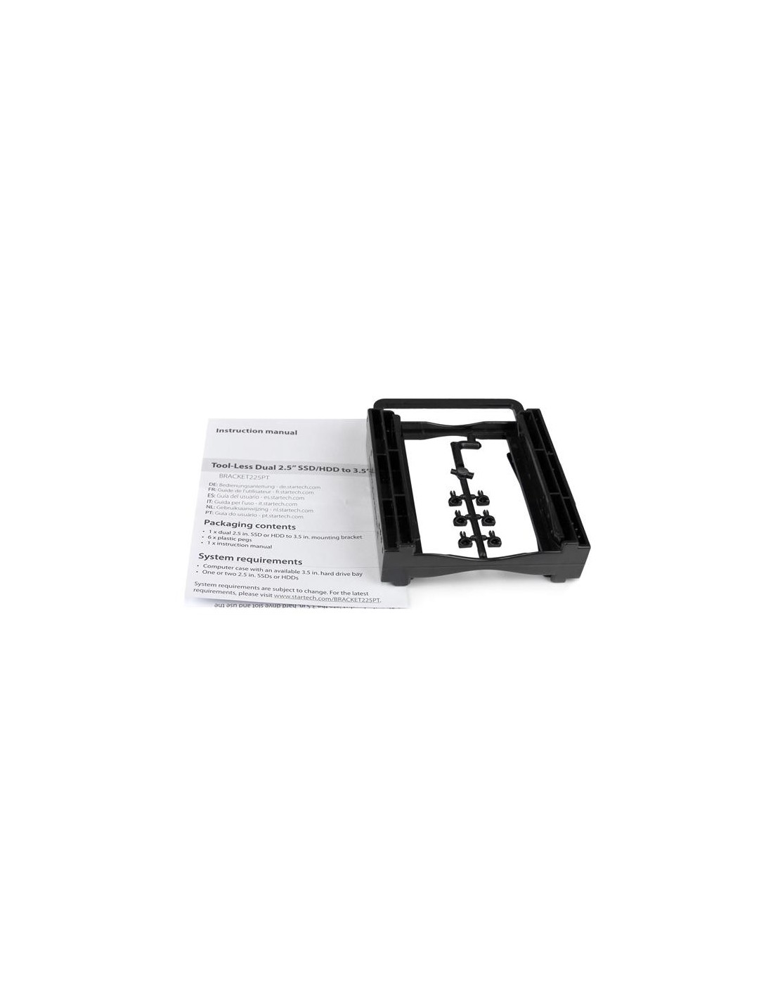 STARTECHStarTech.com Bracket de Montaje para 2 Unidades de DD/SSD de 2,5" en Bahía de 3,5" - Sin herramientas, 8,89 cm (3.5"), Panel embellecedor frontal, Negro, 2.5", IDE/ATA, SATA, Plástico