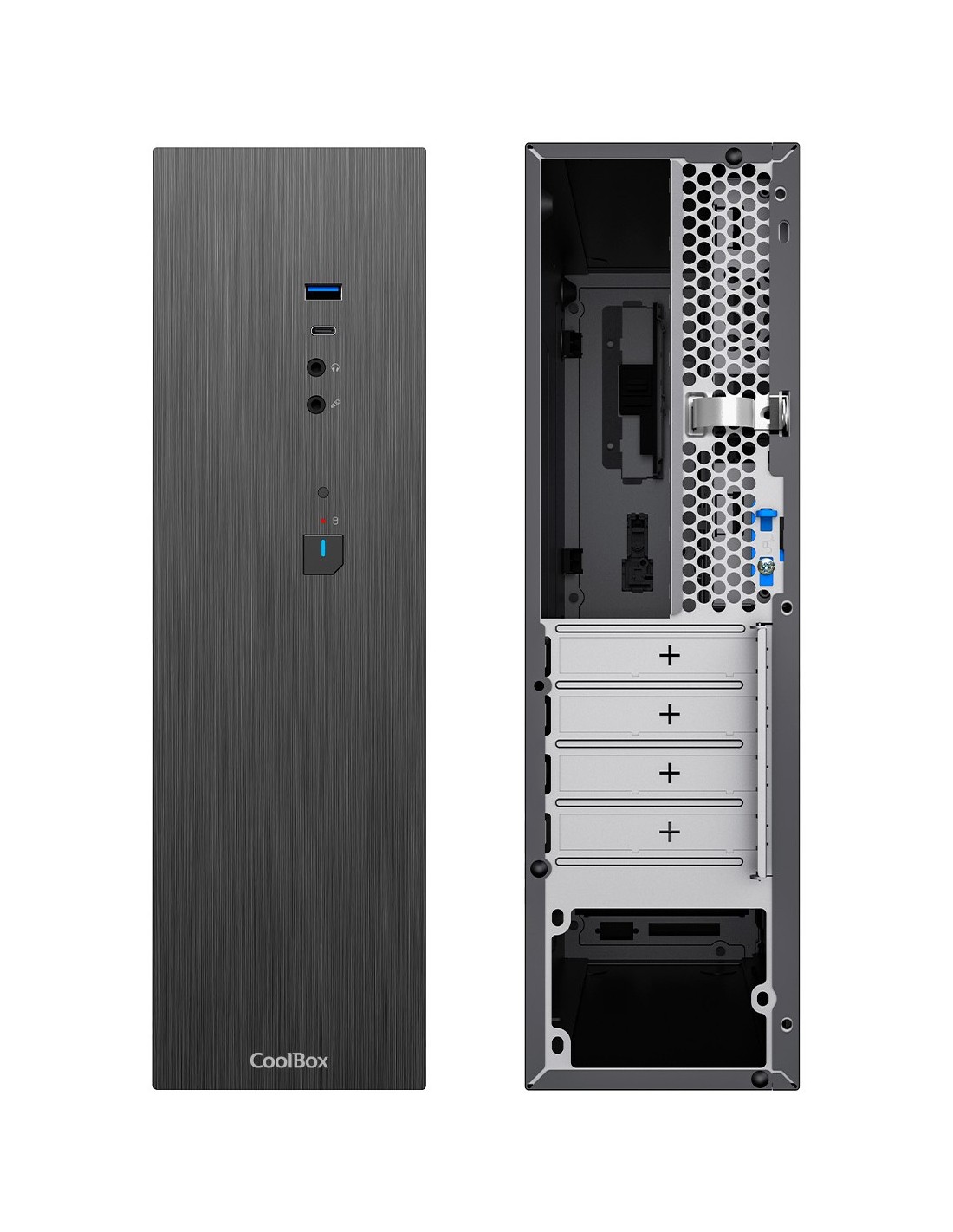 COOLBOXCoolBox CAJA MATX SLIM T370 USB-C 3.2 GEN1 FTE.500GRT 500W, Perfil bajo (Slimline), PC, Negro, micro ATX, Mini-ITX, Acrilonitrilo butadieno estireno (ABS), SGCC, SPCC, Hogar / Oficina