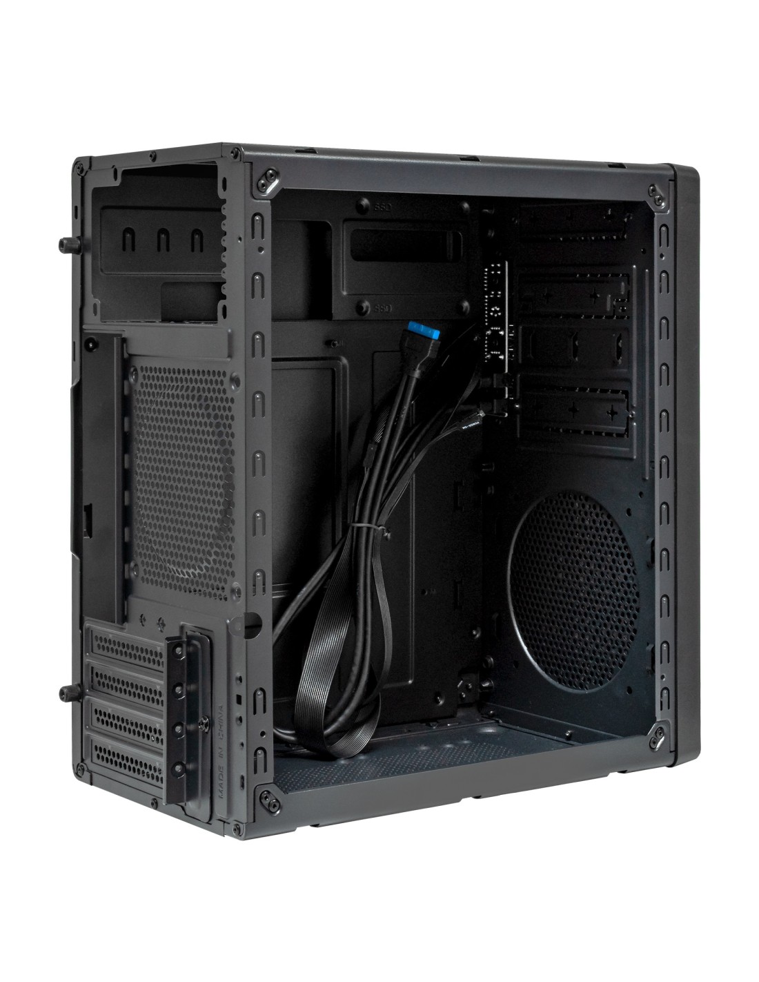 Dispone de múltiples opciones de almacenamiento, permitiendo instalar 1 unidad de 3,5” + 2 de 2,5” o hasta 3 de 2,5”, adaptándose a diversas configuraciones de discos duros y unidades SSD. Además, su compatibilidad con tarjetas gráficas de hasta 250 mm amplía las posibilidades de optimización del sistema.