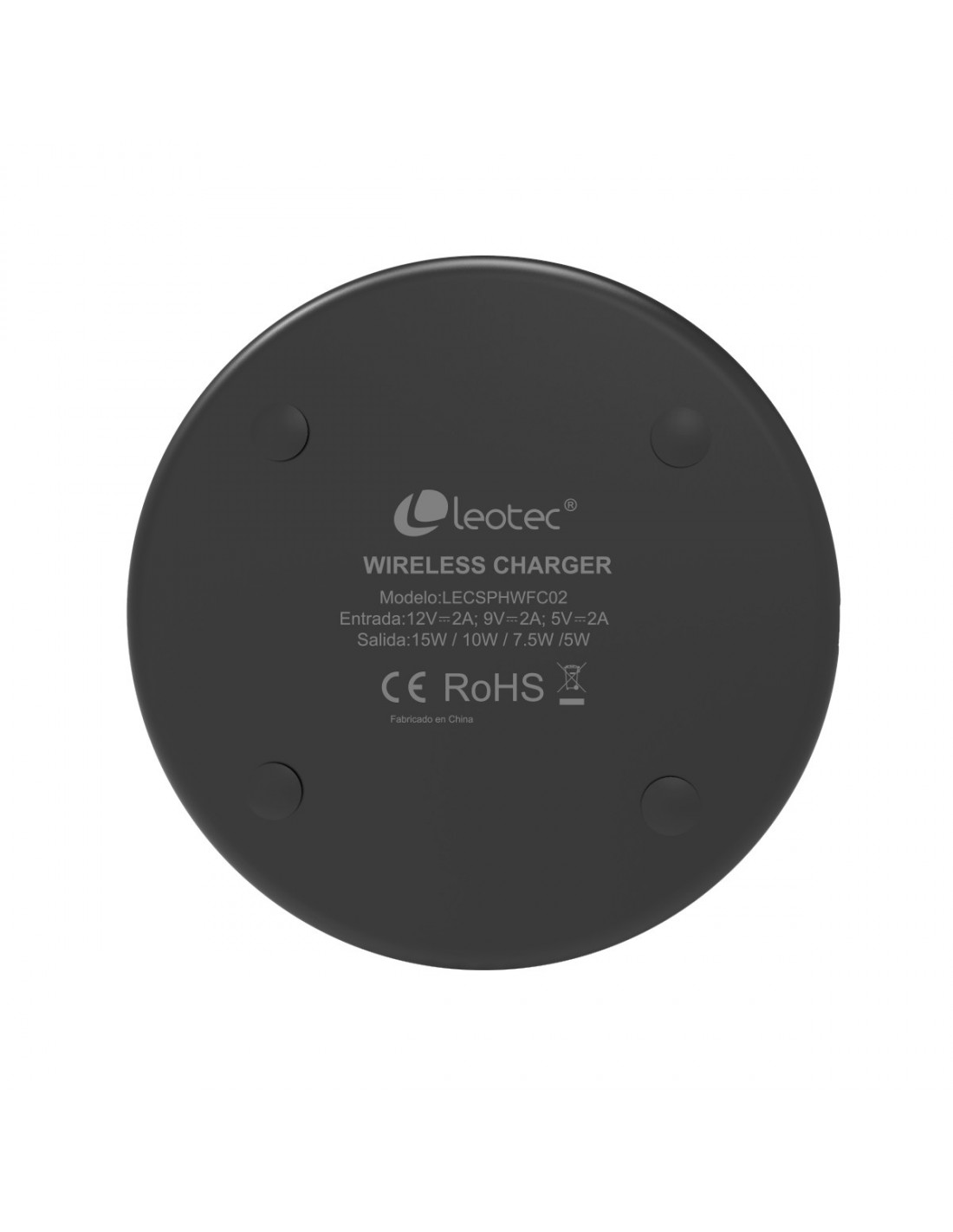 LEOTECLeotec Cargador Inalámbrico de carga rápida, Interior, Corriente alterna, USB, 12 V, Negro