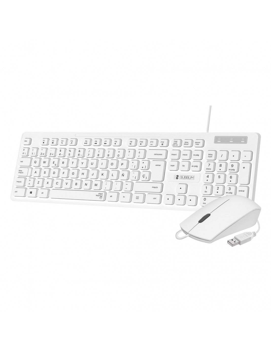 SUBBLIMSUBBLIM Teclado Ergonómico y ratón Combo Business Slim Silencioso con cable USB Blanco, Alámbrico, USB, Interruptor de membrana, QWERTY, Blanco, Ratón incluido