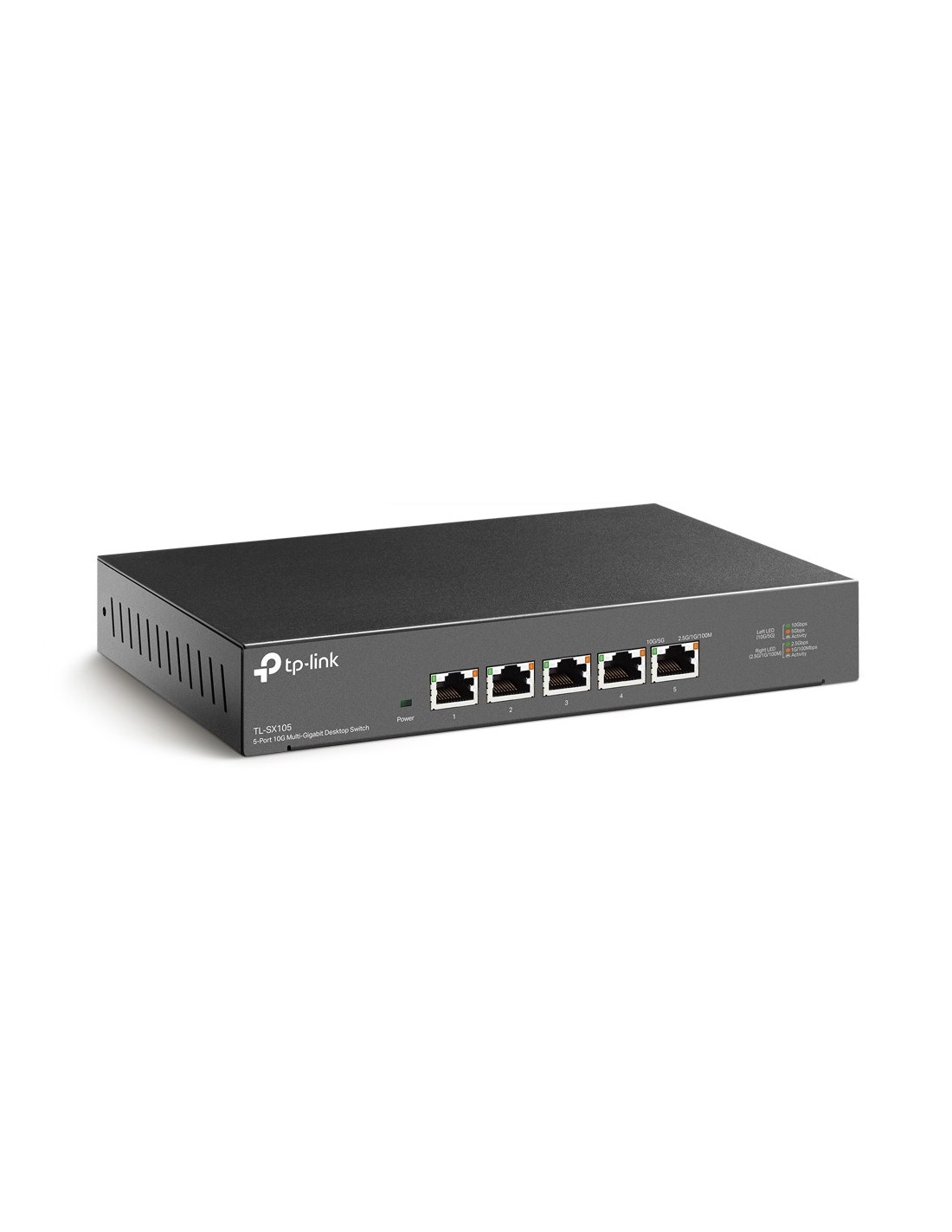 TP-Link TL-SX105. Tipo de interruptor: No administrado. Puertos tipo básico de conmutación RJ-45 Ethernet: 10G Ethernet (100/1000/10000), Cantidad de puertos básicos de conmutación RJ-45 Ethernet: 5. Tabla de direcciones MAC: 32000 entradas, Capacidad de conmutación: 100 Gbit/s. Estándares de red: IEEE 802.1p, IEEE 802.3ab, IEEE 802.3an, IEEE 802.3bz, IEEE 802.3u, IEEE 802.3x. Montaje de pared