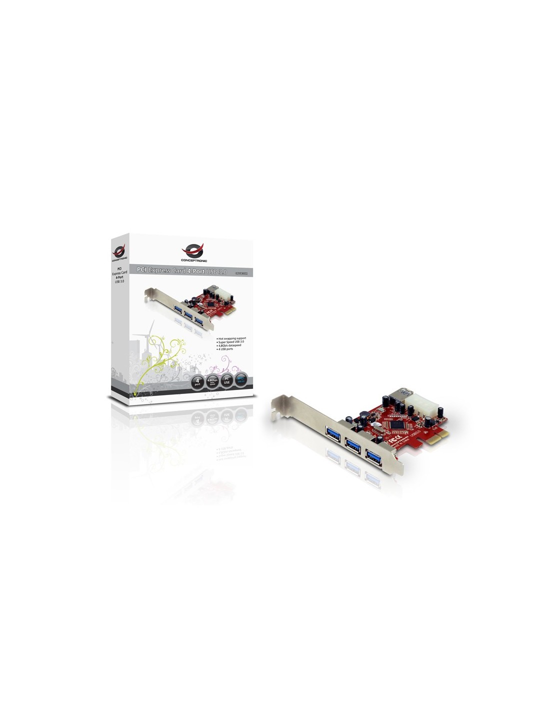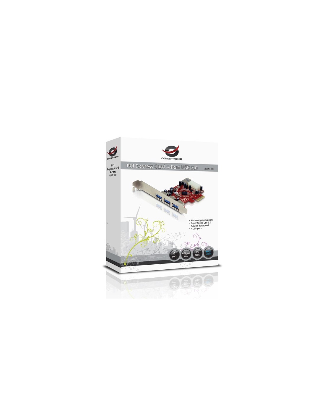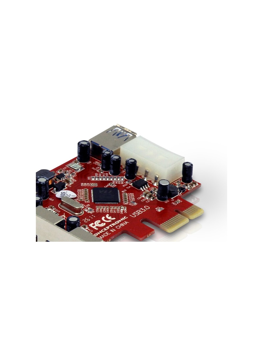 Conceptronic C4USB3EXI. Interfaz de host: PCIe, Interfaz de salida: USB 3.2 Gen 1 (3.1 Gen 1). Color del producto: Rojo, Plata, País de origen: China. Modelo del procesador: VIA VL800, Tasa de transferencia de datos (max): 4,8 Gbit/s. Ancho: 84 mm, Profundidad: 1,6 mm, Altura: 66 mm. Ancho del paquete: 156 mm, Profundidad del paquete: 26 mm, Altura del paquete: 132 mm