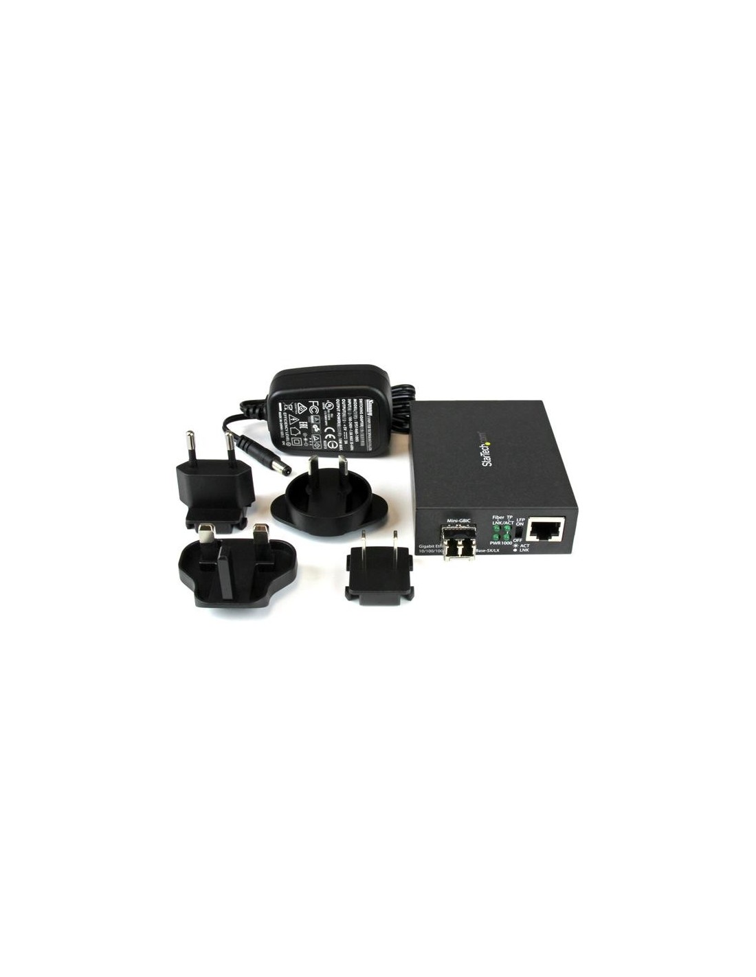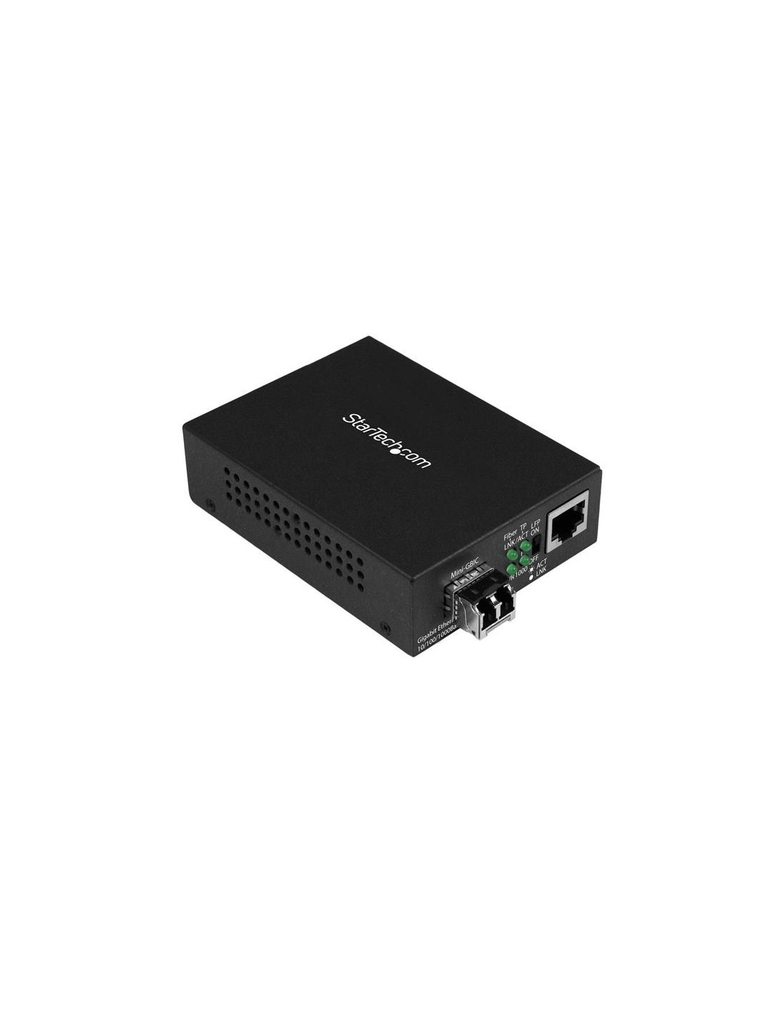 StarTech.com Conversor Compacto de Medios Ethernet Gigabit a Fibra Multimodo LC - 550m. Rango máximo de transferencia de datos: 1000 Mbit/s, Interfaz de convertidor de entrada: 1000Base-T, 100Base-TX, 10Base-T, Interfaz de convertidor de salida: 1000Base-LX, 1000Base-SX. Conector fibra óptica: LC, Tecnología de conectividad: Alámbrico. Distancia de transferencia máxima: 550 m, Longitud de onda: 850 nm, Estructura de modo de fibra: Multimodo. Indicadores LED: Actividad, Enlace, Poder, Color del producto: Negro, Material de la carcasa: Acero. Voltaje de entrada: 100 - 240 V, Corriente de entrada: 1 A, Voltaje de salida: 5 V