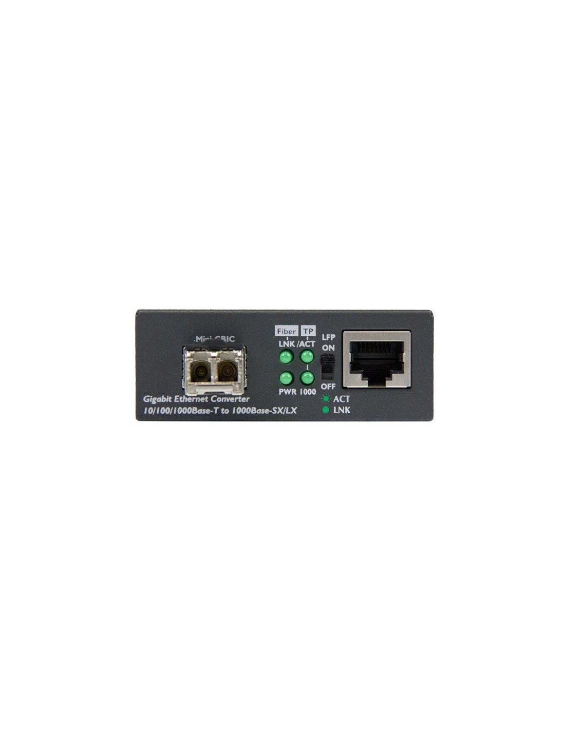 El conversor de medios Gigabit a fibra óptica ofrece una solución económica y fiable para extensiones de red a a distancias más cortas. Conecta una red Ethernet a dispositivos remotos a través de una red troncal de fibra óptica, con un rango de 550 metros en la interfaz de fibra óptica. El conversor de medios tiene una duradera caja de metal, diseñada para ofrecer un rendimiento a largo plazo.