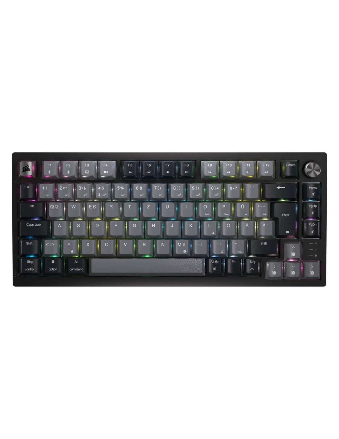 Corsair CH-91D401L-ES. Formato del teclado: 75%. Estilo de teclado: Derecho. Tecnología de conectividad: Alámbrico, Interfaz del dispositivo: USB, Interruptor del teclado: Interruptor mecánico, Diseño de teclado: QWERTY. Tipo de retroiluminación: LED RGB. Uso recomendado: Juego. Color del producto: Negro