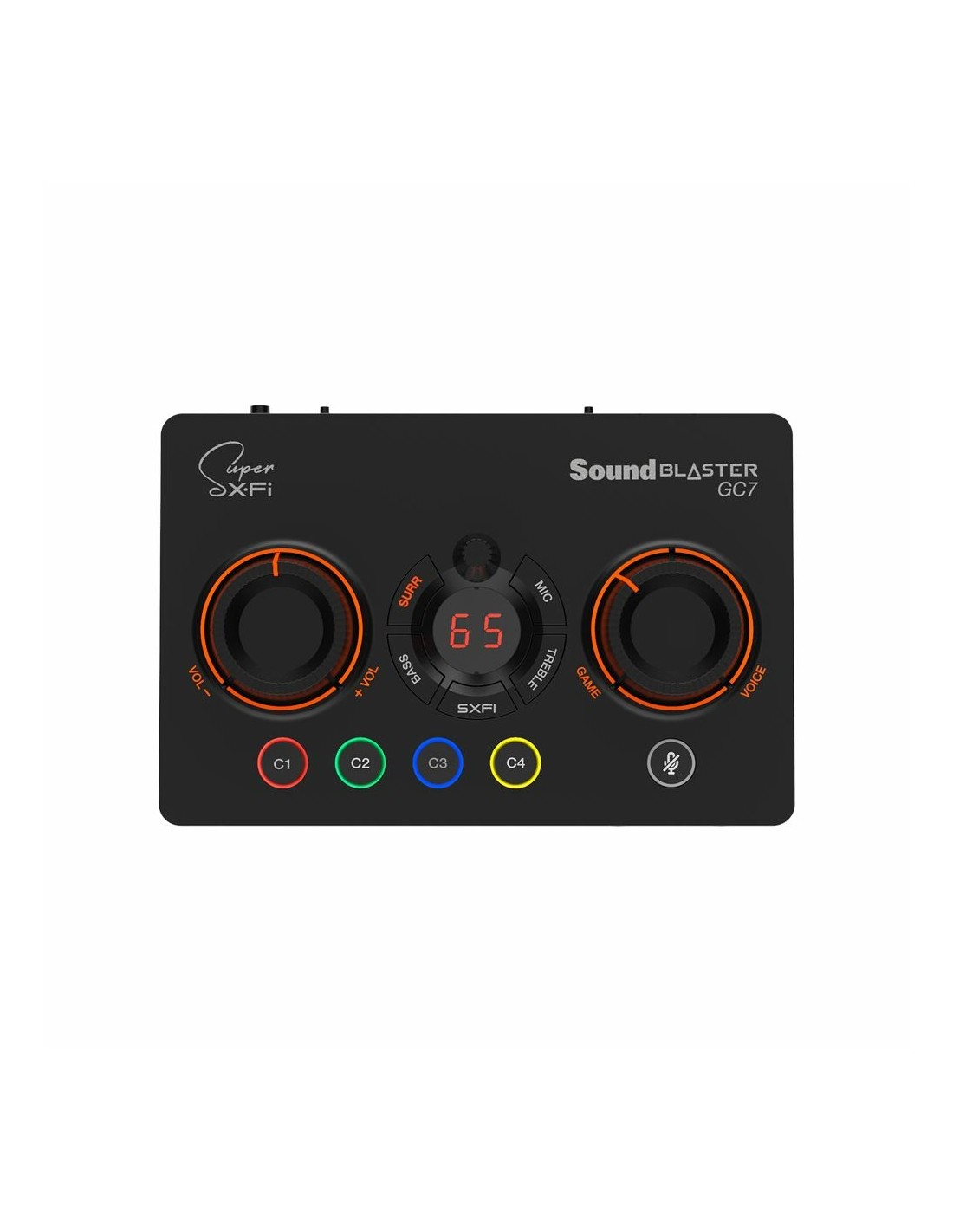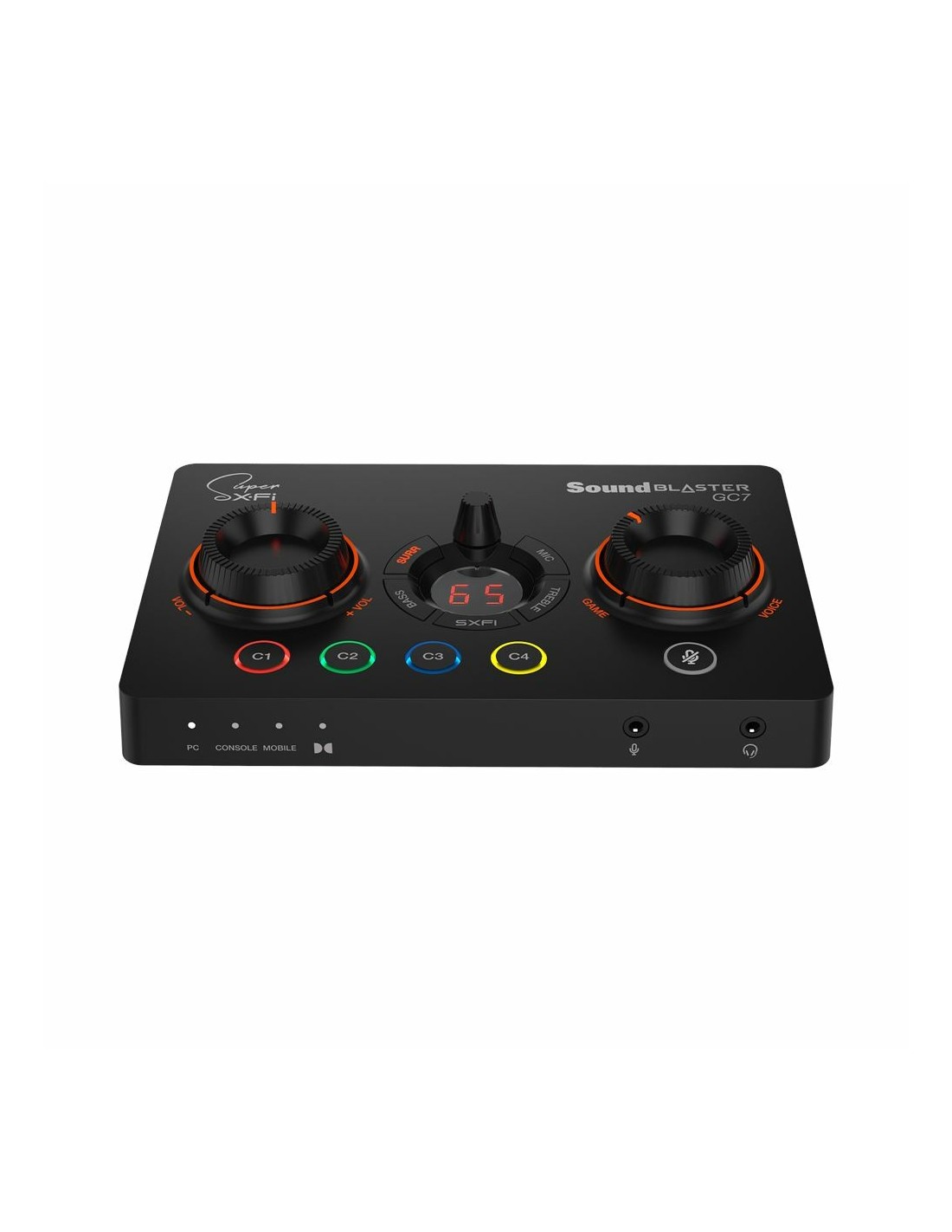 Creative Labs Sound Blaster GC7. Canales de salida de audio: 7.1 canales, Calidad de audio: 24 bit, Impedancia recomendada para los auriculares: 32 - 300 Ω. Interfaz de host: USB. Color del producto: Negro, Cables incluidos: Audio (3ˌ5mm), Óptico, USB. Sistema operativo Windows soportado: Windows 10, Windows 11, Sistema operativo MAC soportado: Mac OS X 10.15 Catalina, Mac OS X 11.0 Big Sur, Mac OS X 12.0 Monterey, Mac OS X 13.0 Ventura, Mac..., Plataformas de juego soportadas: Nintendo Switch, PlayStation 4. RAM mínima: 1024 MB, Procesador mínimo: Intel Core i3/AMD Ryzen