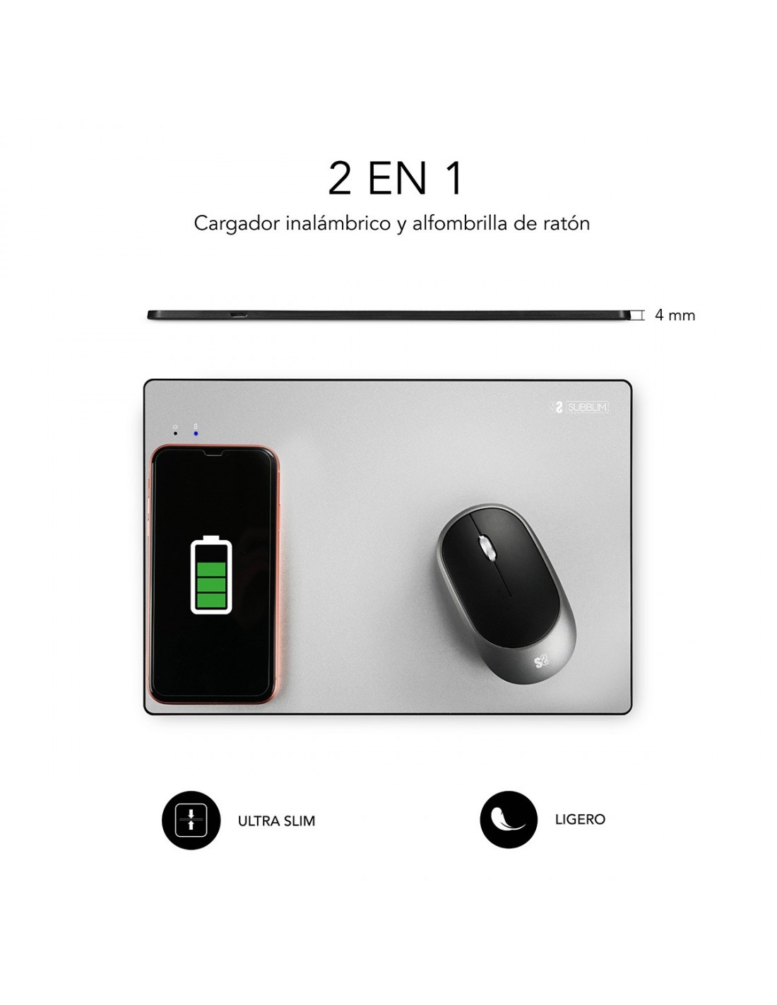(D) SUBBLIM ALFOMBRILLA CON CARGADOR INALAMBRICO MOUSEPAD WIRELESS CHARGER ALUMINUM SILVER 10W