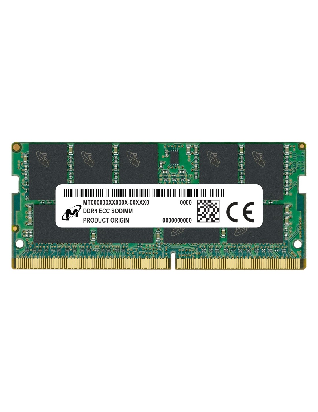 Micron MTA9ASF2G72HZ-3G2R. Componente para: Portátil, Memoria interna: 16 GB, Diseño de memoria (módulos x tamaño): 1 x 16 GB, Tipo de memoria interna: DDR4, Velocidad de memoria del reloj: 3200 MHz, Forma de factor de memoria: 260-pin SO-DIMM, Latencia CAS: 22, ECC