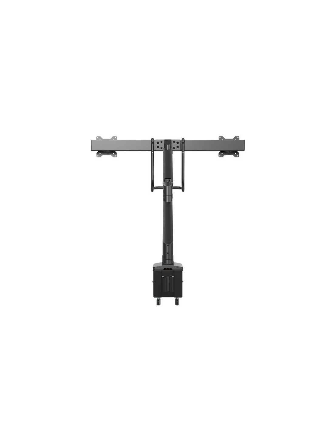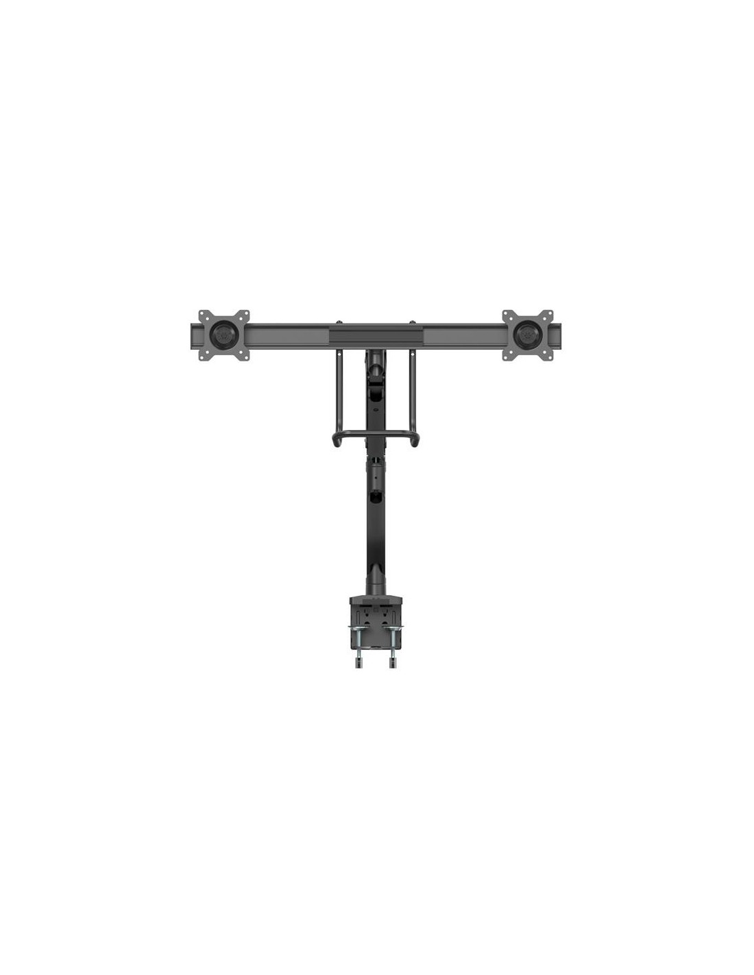 Este brazo para doble monitor le permite el montaje de dos monitores de 17" a 32" (compatibles con soporte VESA), cada uno con peso de hasta 8kg, en una sola base de perfil bajo. Le permite un montaje flexible por sujeción en escritorio o a través del hueco del ojal, lo cual ahorra espacio, a la vez que crea un espacio de trabajo ergonómico en cualquier entorno de oficina. Deje libre más espacio en su escritorio/mesa Este soporte para monitor, de altura ajustable y diseño de estable barra cruzada, le permite crear más espacio útil de trabajo, ya que puede instalar sus monitores lado a lado en una sola base. Visualización óptima El soporte para pantalla de ordenador permite el ajuste de la altura con un solo toque. El movimiento de inclinación de +/- 10° y giro de +/- 90° facilitan ajustar el soporte al ángulo de visualización óptimo. También puede rotar su pantalla 180º para visualización vertical u horizontal, además de ajustes laterales a lo largo de la longitud de la barra cruzada. Instalación flexible