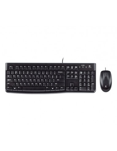 Logitech Desktop MK120. Tecnología de conectividad: Alámbrico, Interfaz del dispositivo: USB, Diseño de teclado: QWERTY. Longitud de cable: 1,5 m. Color del producto: Negro. Ratón incluido