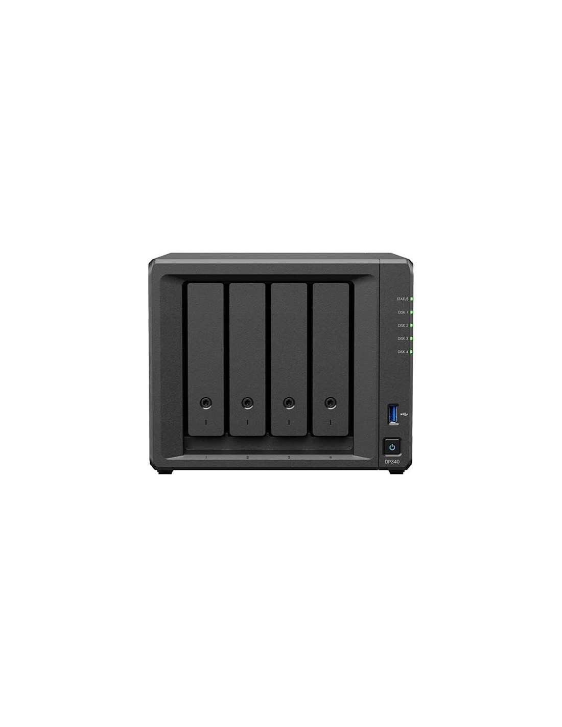 Synology DP340. Tipo: NAS. Tipo de chasis: Escritorio. Modelo del procesador: R1600. Memoria interna: 16 GB. Capacidad de almacenamiento total instalado: 32 TB, Tipo de unidades de almacenamiento instaladas: Unidad de disco duro