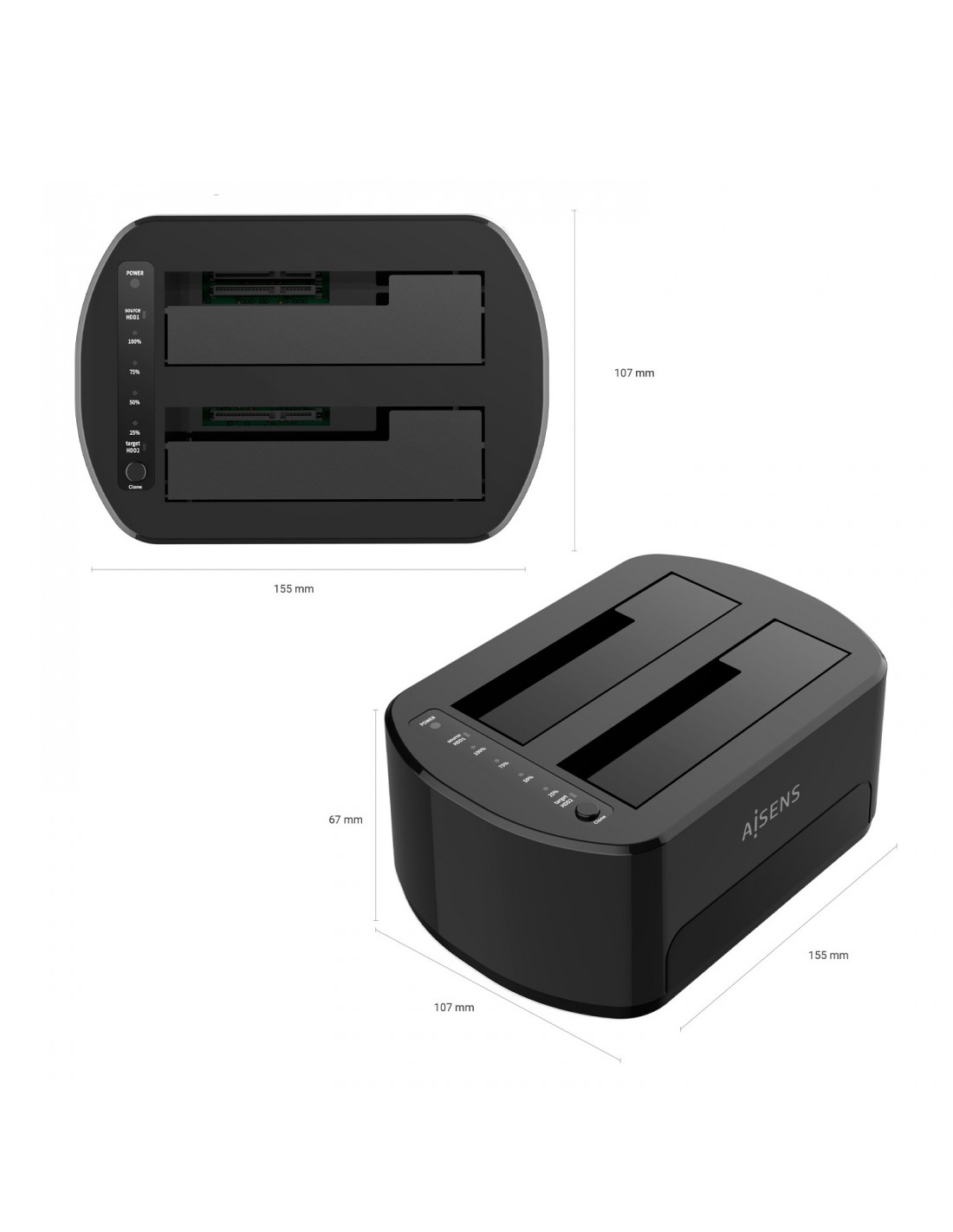 AISENSAISENS Estacion de Docking de Doble Bahia ASDS-D03B SATA 2.5/3.5 a USB 3.0/3.1 Gen1, Clone, Negra, Unidad de disco duro, SSD, SATA, 2.5,3.5", 2 TB, USB 3.2 Gen 1 (3.1 Gen 1) Type-B, 5 Gbit/s