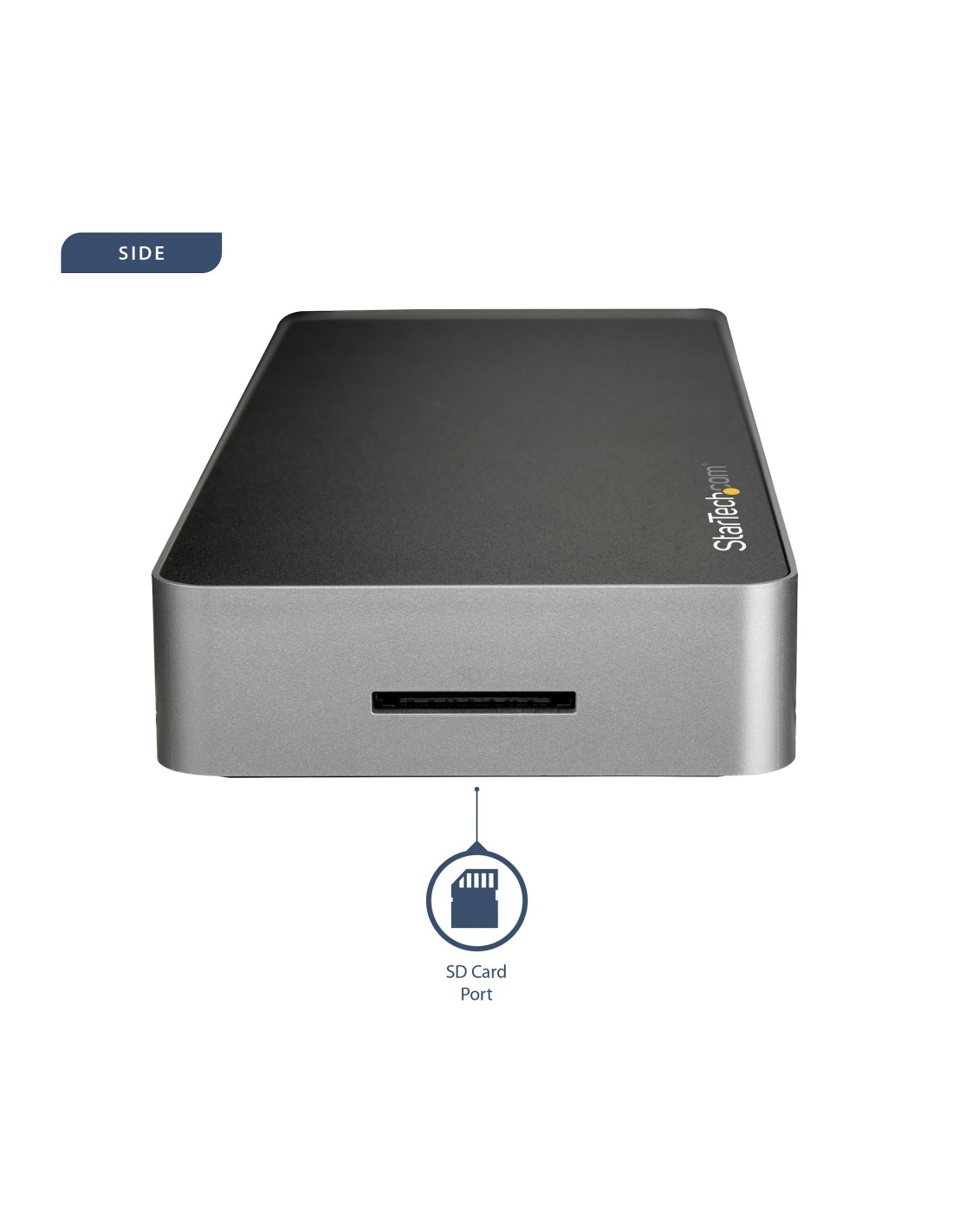 StarTech.com Dock USB C para 2 Monitores 4K 30Hz con HDMI y DisplayPort - Entrega de Potencia 60W - SD - Hub 4x Puertos USB-A 3.0 - Gb Ethernet - Audio - Compatible con Thunderbolt 3. Tecnología de conectividad: Alámbrico, Interfaz de host: USB 3.2 Gen 1 (3.1 Gen 1) Type-C, Entrega de energía USB (USB Power Delivery) de hasta: 60 W. Ethernet LAN, velocidad de transferencia de datos: 10,100,1000 Mbit/s, Estándares de red: IEEE 802.3, IEEE 802.3ab, IEEE 802.3u. Color del producto: Negro, Plata, Tarjetas de memoria compatibles: MMC, MicroSD (TransFlash), MicroSDHC, MicroSDXC, SD, SDHC, SDXC, Velocidad de transferencia de datos: 5 Gbit/s. Alimentación: Corriente alterna, Voltaje de entrada AC: 100 - 240 V, Corriente de entrada: 2 A. Sistema operativo Windows soportado: Windows 10, Windows 10 Education, Windows 10 Education x64, Windows 10 Enterprise, Windows 10..., Sistema operativo MAC soportado: Mac OS X 10.11 El Capitan, Mac OS X 10.12 Sierra, Mac OS X 10.14 Mojave, Mac OS X 10.15 Catalina,..., Otros sistemas operativos soportados: ChromeOS