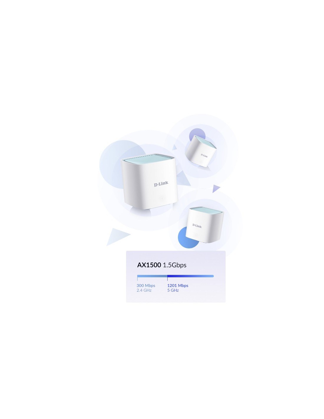 D-Link EAGLE PRO AI AX1500. Color del producto: Blanco, Tipo de antena: Interno, Tipo de producto: Sistema de malla. Banda Wi-Fi: Doble banda (2,4 GHz / 5 GHz), Estándar Wi-Fi: Wi-Fi 6E (802.11ax), Wi-Fi estándares: 802.11a, 802.11b, 802.11g, Wi-Fi 4 (802.11n), Wi-Fi 5 (802.11ac), Wi-Fi 6 (802.11ax). Asistente virtual: Amazon Alexa & Google Assistant, Seguridad con cortafuegos: DoS, Stateful Packet Inspection, Anti-spoofing Checking, IP/MAC Address Filtering, 1 x DMZ, Sistema operativo MAC soportado: Mac OS X 10.10 Yosemite, Mac OS X 10.11 El Capitan, Mac OS X 10.12 Sierra, Mac OS X 10.13 High.... Consumo energético: 12 W, Voltaje de entrada de adaptador AC: 12 V, Corriente de entrada del adaptador de CA: 1 A. Ancho: 92 mm, Profundidad: 92 mm, Altura: 93 mm