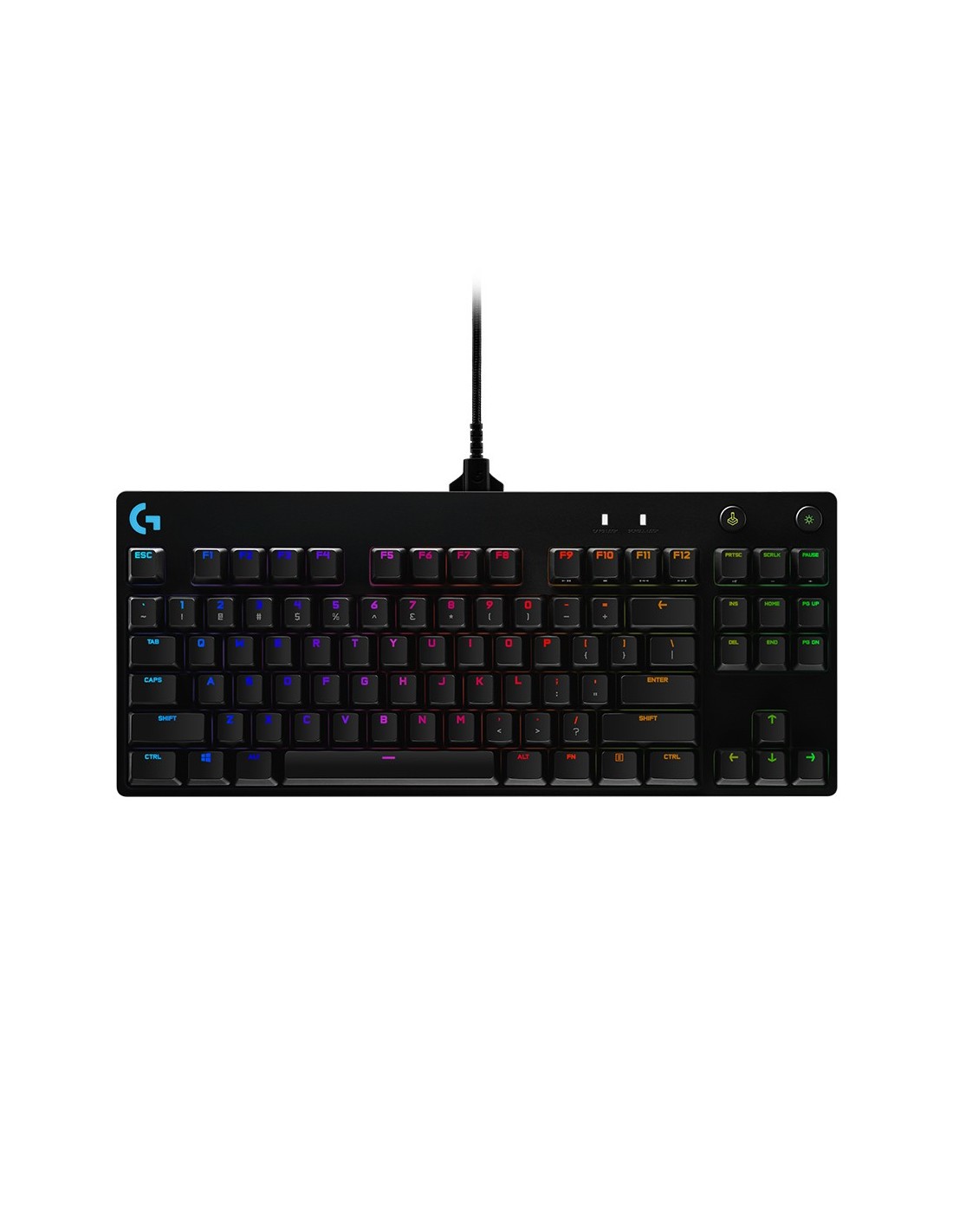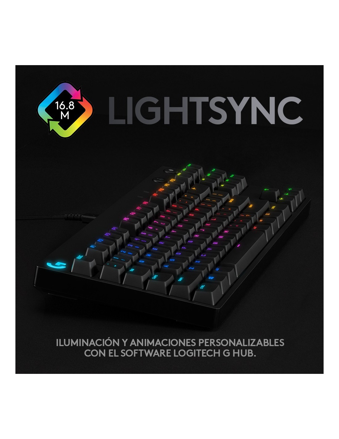 Logitech G 920-010593. Formato del teclado: Tenkeyless (sin zona numérica) (80 - 87%). Estilo de teclado: Derecho. Tecnología de conectividad: Alámbrico, Interfaz del dispositivo: USB, Interruptor del teclado: Interruptor mecánico, Diseño de teclado: QWERTY. Tipo de retroiluminación: LED RGB. Longitud de cable: 1,8 m. Uso recomendado: Juego. Color del producto: Negro
