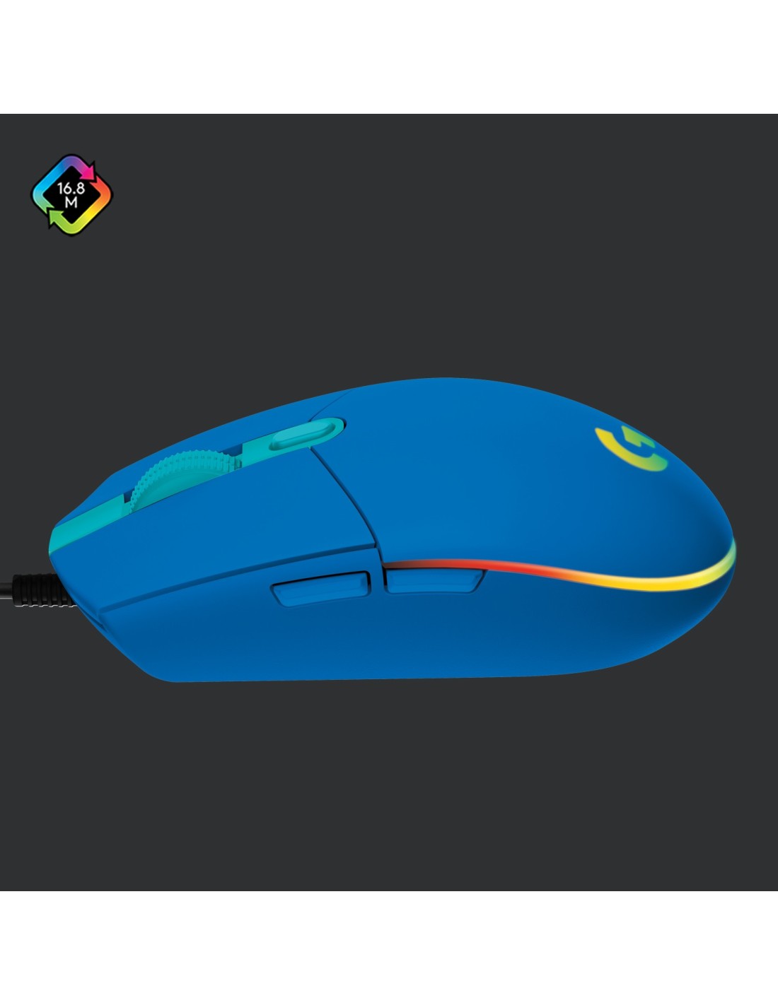 Logitech G 910-005798. Interfaz del dispositivo: USB tipo A, Resolución de movimiento: 8000 DPI, Tiempo de respuesta: 1 ms, Tipo de botones: Botones presionados, Cantidad de botones: 6, Tipo de desplazamiento: Rueda. Iluminación de color: Multi. Fuente de energía: Cable. Color del producto: Azul