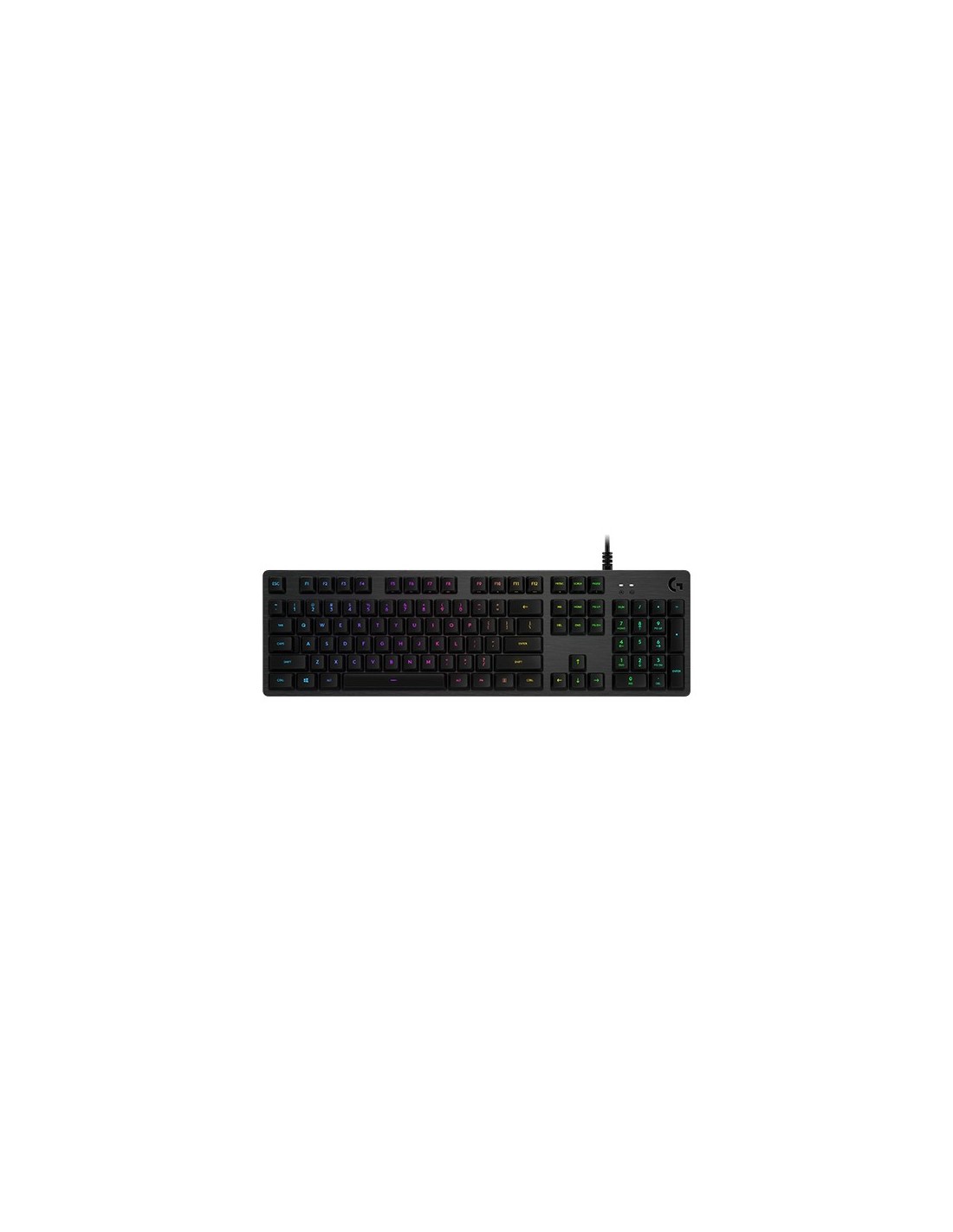 Logitech G 920-009434. Formato del teclado: Completo (100%). Estilo de teclado: Derecho. Tecnología de conectividad: Alámbrico, Interfaz del dispositivo: USB, Interruptor del teclado: Interruptor mecánico. Tipo de retroiluminación: LED. Longitud de cable: 1,8 m. Uso recomendado: Juego. Color del producto: Carbono
