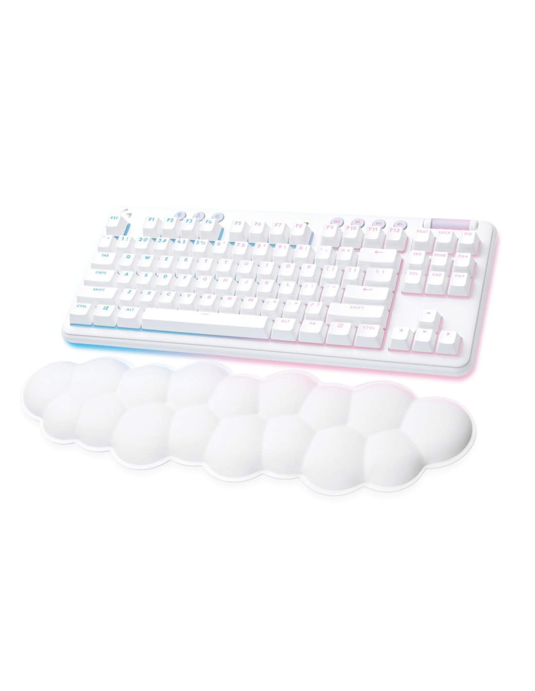Logitech G G715. Formato del teclado: Tenkeyless (sin zona numérica) (80 - 87%). Estilo de teclado: Derecho. Tecnología de conectividad: Inalámbrico, Interfaz del dispositivo: RF Wireless + Bluetooth, Interruptor del teclado: Interruptor mecánico, Diseño de teclado: QWERTY, Teclado, cantidad de teclas: 87. Tipo de retroiluminación: LED RGB, Descansa muñecas. Longitud de cable: 1,8 m. Uso recomendado: Juego. Color del producto: Blanco