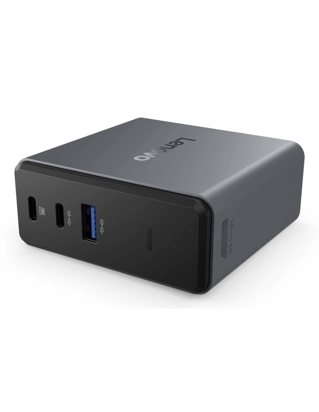 Lenovo X9 Charging GaN Dock. Tecnología de conectividad: Alámbrico, Interfaz de host: USB 3.2 Gen 2 (3.1 Gen 2) Type-C, Entrega de energía USB (USB Power Delivery) de hasta: 60 W. Color del producto: Gris, Tarjetas de memoria compatibles: MicroSD (TransFlash), Resolución (máxima digital): 3840 x 2160 Pixeles. Alimentación: Corriente alterna, Voltaje de entrada AC: 100 - 240 V, Corriente de entrada: 1.6 A. Sistema operativo Windows soportado: Windows 10, Windows 11. Ancho: 80 mm, Profundidad: 80 mm, Altura: 33,5 mm
