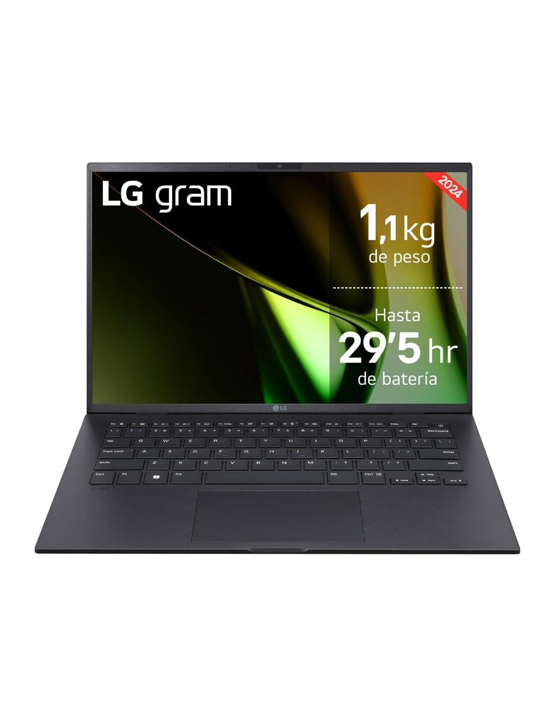LG Gram 14Z90S. Tipo de producto: Portátil, Factor de forma: Concha. Familia de procesador: Intel Core Ultra 7, Modelo del procesador: 155H, Frecuencia del procesador: 1,4 GHz. Diagonal de la pantalla: 35,6 cm (14"), Tipo HD: Full HD, Resolución de la pantalla: 1920 x 1200 Pixeles. Memoria interna: 32 GB, Tipo de memoria interna: LPDDR5-SDRAM. Capacidad total de almacenaje: 1 TB, Unidad de almacenamiento: SSD. Modelo de adaptador gráfico incorporado: Intel Arc Graphics. Sistema operativo instalado: Windows 11 Home. Color del producto: Negro