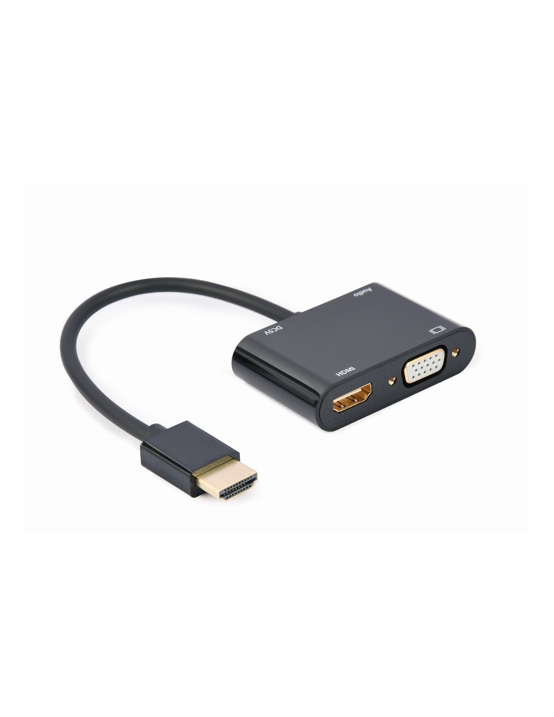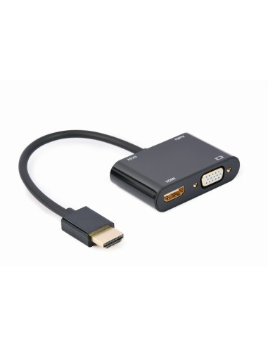 Gembird A-HDMIM-HDMIFVGAF-01. Interfaz de host: HDMI, Interfaz de salida: HDMI, VGA, Género de la interfaz de host: Masculino. Color del producto: Negro, Longitud máxima del cable: 0,15 m. Ancho: 63 mm, Profundidad: 210 mm, Altura: 16 mm. Cantidad por paquete: 1 pieza(s), Ancho del paquete: 120 mm, Profundidad del paquete: 210 mm